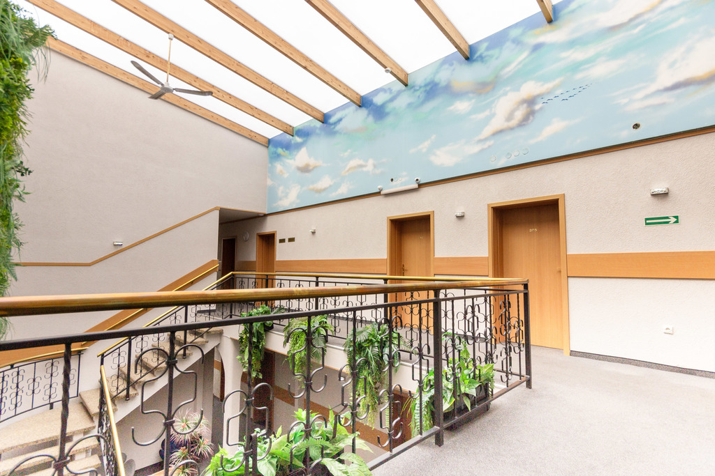Budynek o powierzchni użytkowej 2020 m2, pełen przestrzeni, o bardzo funkcjonalnym rozkładzie, dwukondygnacyjny, płaski dach, podpiwniczony