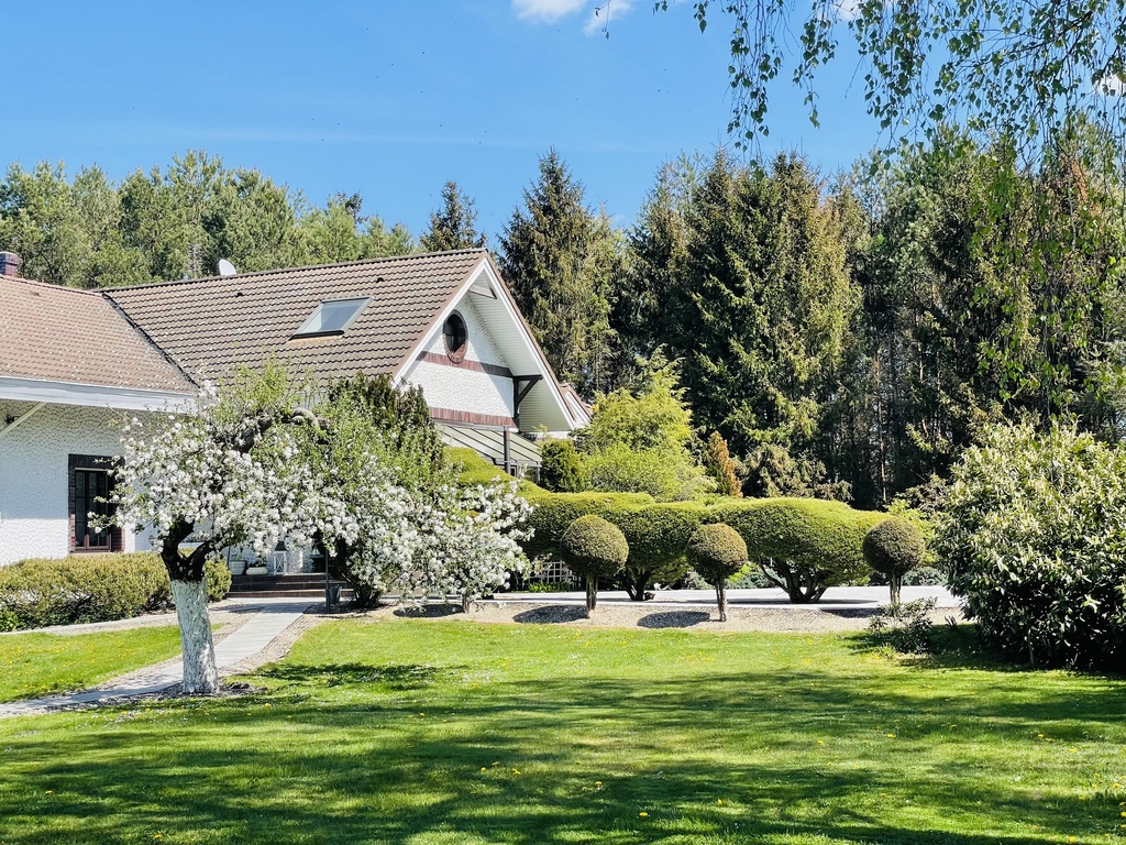 Prezentujemy piękną posiadłość w administracyjnych granicach miasta Szczecin, Wielgowo-Sławociesze, położoną na skraju otuliny parku krajobrazowego Puszcza Bukowa. Jest znakomicie skomunikowana z centrum miasta, dojazd ok. 17 min. Otoczona własnym lasem, piękna działka o pow. 1ha 2500m2 tworzy całkowicie prywatną strefę, z dala od sąsiadów. Na działce znajduje się pełnowymiarowy kort tenisowy, ze ścianą, chatka z bali, z kominkiem i stołem bilardowym. Również liczne nasadzenia w tym drzewa owocowe, borówka amerykańska i maliny. Część trawiasta działki koszona przez autonomiczne roboty koszące.