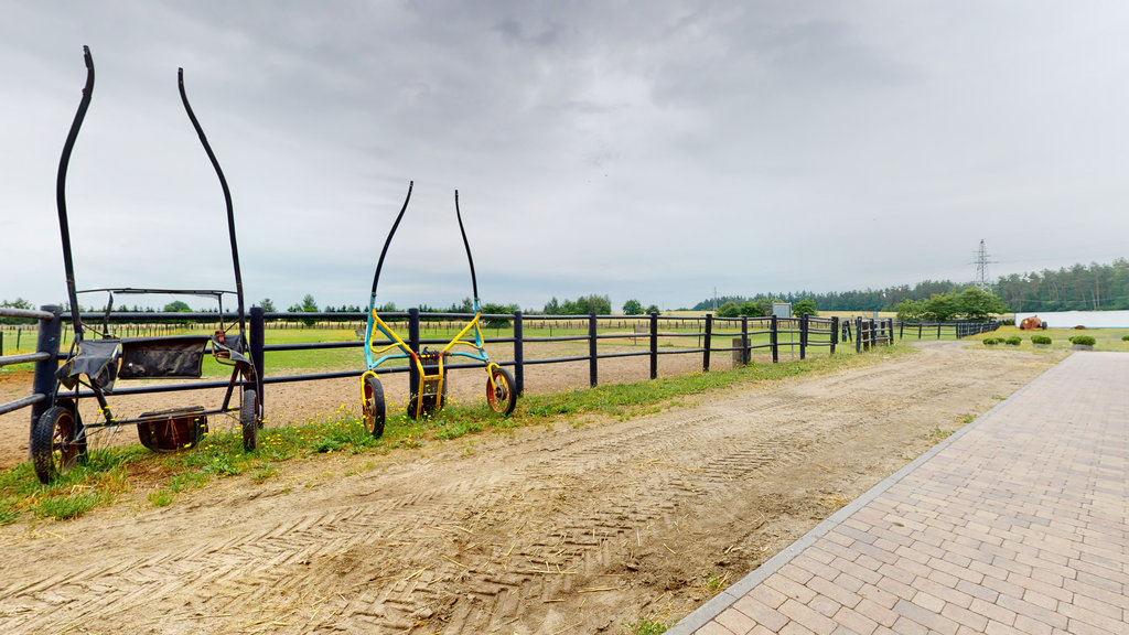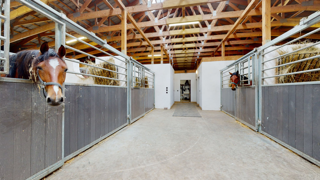 Budynek stajni wraz z zapleczem z 2014 roku o powierzchni użytkowej 822, 51 m2, konstrukcja murowana, bez podpiwniczenia. Stajnię stanowią boksy 9 szt. i boksy angielskie 10 szt., samodzielne mieszkanie, warsztat, magazyn, gabinet badań , siodlarnia, myjnie, biegalnie, pomieszczenia techniczne ( pompa ciepła) i komunkikacja.