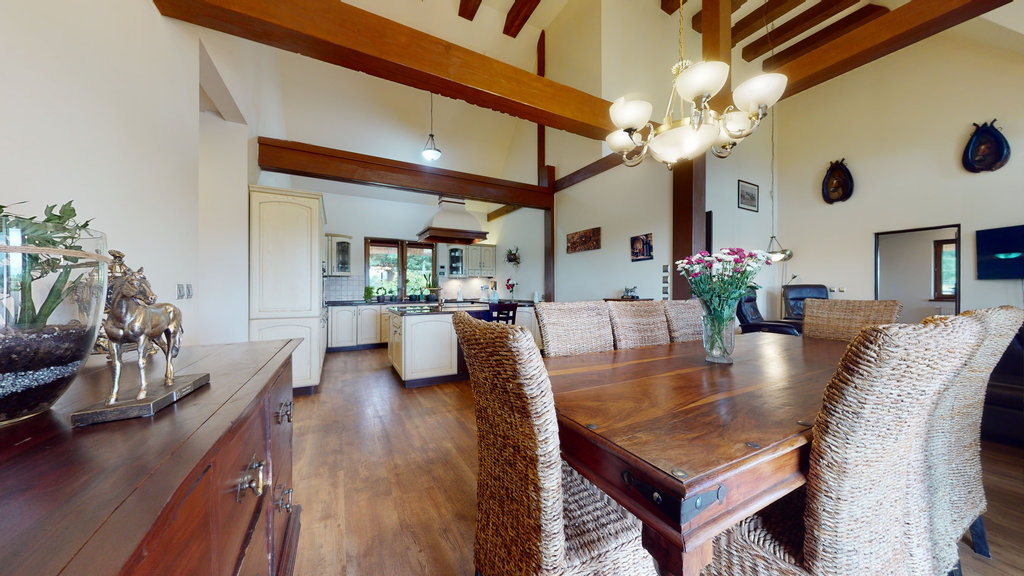 Dom konstrukcji drewnianej z 2015 roku, parterowy z wysokim dachem, stylizowany na chatę wiejską kryty strzechą. Budynek reprezentacyjny o nietuzinkowej architekturze, bardzo wysoki standard wykończenia (foto).