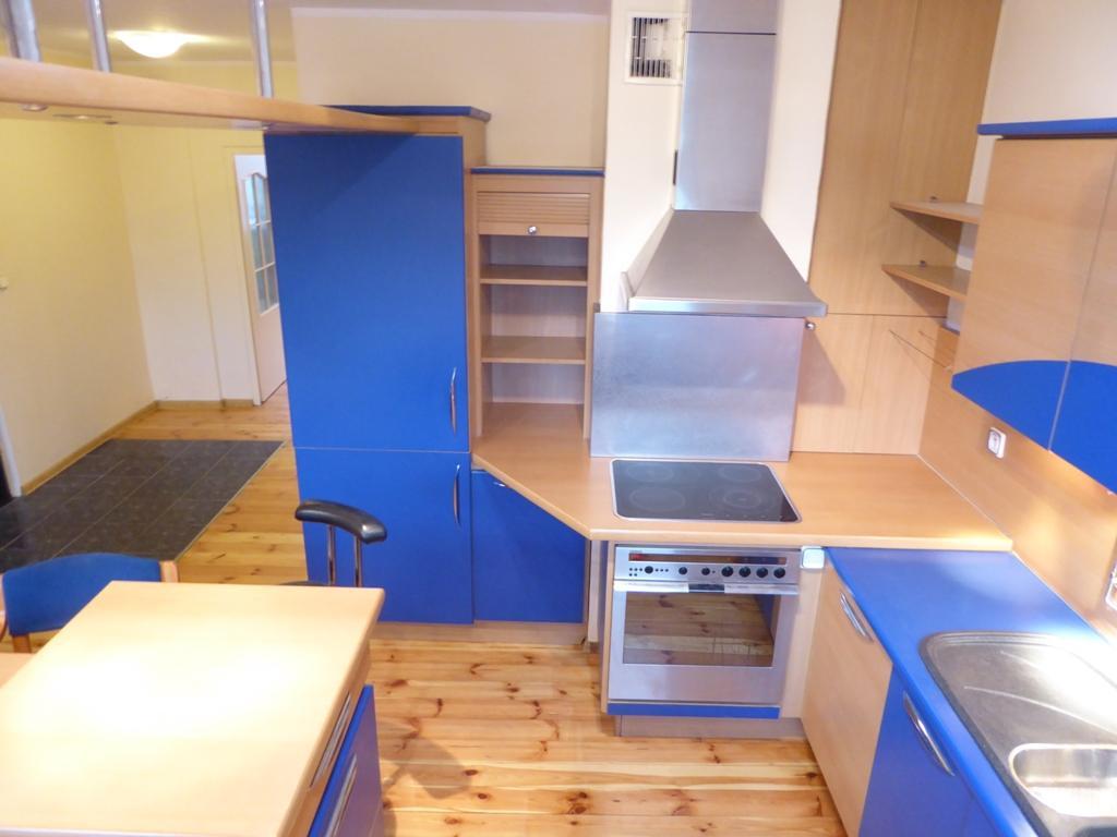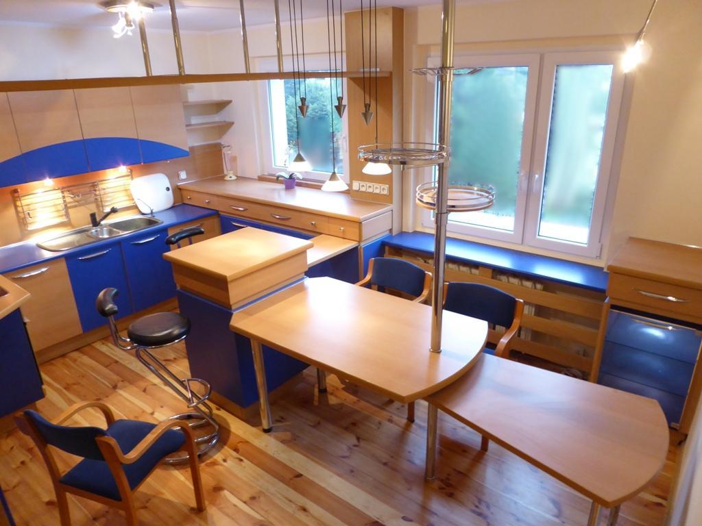 W kuchni eleganckie meble w zabudowie, z elektryczną płytą grzewczą, piekarnikiem, lodówka z zamrażarką WESTFROST. Pod zlewem jest zamontowany filtr wody. Pokój ten jest połączony z przedsionkiem.