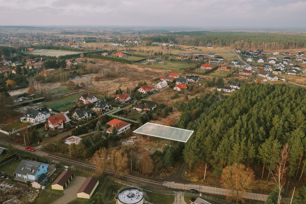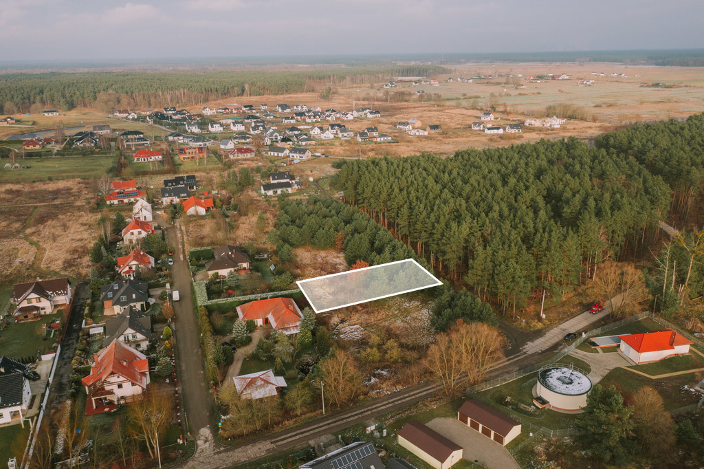 Powierzchnia działki 852 m2, w cenie udział w drodze dojazdowej wzdłuż ściany lasu. Teren płaski, suchy.