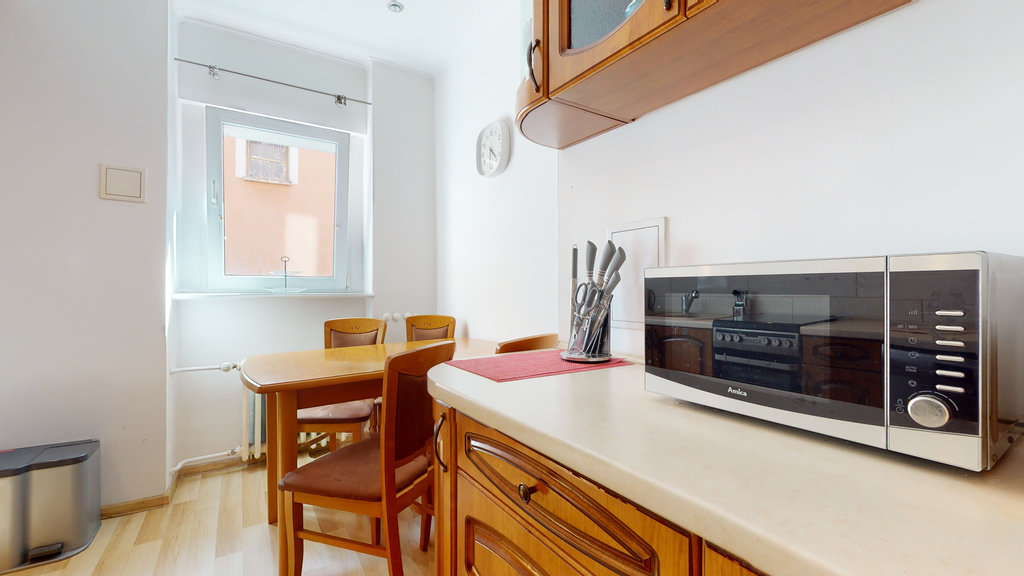 Tylko u nas przestronne dwupokojowe mieszkanie na trzecim piętrze w czteropiętrowej kamienicy.