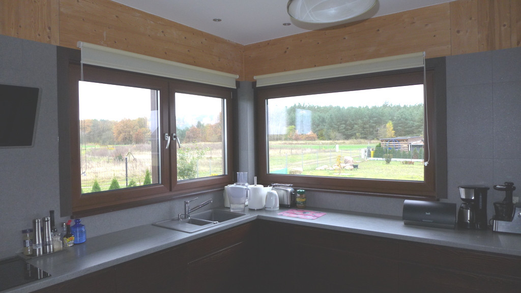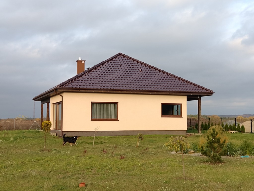 hall, salon o pow. 34m2 z wyjściem na ogród od strony południowo-zachodniej, kuchnia o pow. 17m2, częściowo otwarta na salon, 3 pokoje o pow. 18, 14, 10m2, pokój kąpielowy z wanną i kabiną prysznicową (12m2), pomieszczenie gospodarcze 7,5m2, z piecem gazowym i dodatkową kuchnią. Istnieje możliwość przerobienia części lub całego pomieszczenia na np. drugą łazienkę. Ponadto garaż o pow. 20m2. W kuchni i łazience na podłogach gres, w pozostałych pomieszczeniach panele. Rozprowadzona instalacja alarmowa. Poddasze ocieplone, można na nim przygotować kolejne pomieszczenia do zamieszkania (w dokumentach poddasze występuje jako użytkowe). Powierzchnia parteru wraz z garażem wynosi 154m2, natomiast poddasza 70m2. Ekologiczna technologia budowy domu HBE-System ten jest innowacyjną technologią, opartą w całości na drewnie klejonym warstwowo. Ściany wykonane są z paneli drewnianych łączonych na podwójne pióro-wpust z dodatkowym kanałem, w którym rozprowadzane są instalacje elektryczne. Elementy ścienne spięte są podwaliną i oczepem. Ocieplenie wełną mineralną. System HBE to nowoczesne, ekologiczne i ciepłe domy, które na zachodzie Europy cieszą się olbrzymią popularnością. W całym domu ogrzewanie gazowe podłogowe, okna PCV trzyszybowe, dachówka ceramiczna. Działka o powierzchni 3250m2 w kształcie bardzo zbliżonym do kwadratu, ogrodzona i zagospodarowana (również opcja późniejszego podziału i sprzedaży części działki). Opcja pozostawienia przez właściciela sprzętu do pielęgnacji ogrodu. Piękny widok na panoramę Szczecina. Na działce znajduje się również duży kojec dla psów. W cenie domu pozostaje wyposażenie kuchni, stałe elementy, oraz możliwość pozostawienia umeblowania. Woda-ujęcie własne, kanalizacja-oczyszczalnia ekologiczna. Dojazd drogą utwardzoną. Dom jest bardzo ciepły, rachunki za gaz wynoszą zaledwie 300 pln/2 m-ce. Wydanie domu możliwe od zaraz.