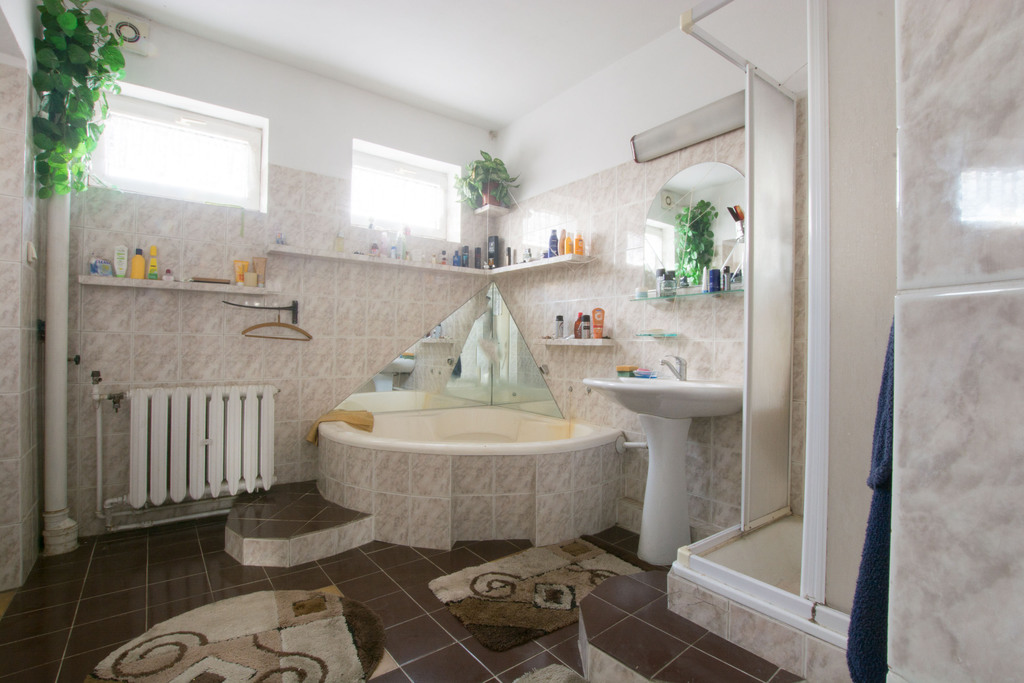W piwnicy znajduje się: magazyn i "kotłownia" z trzema zbiornikami, piecem na paliwo płynne (olej).