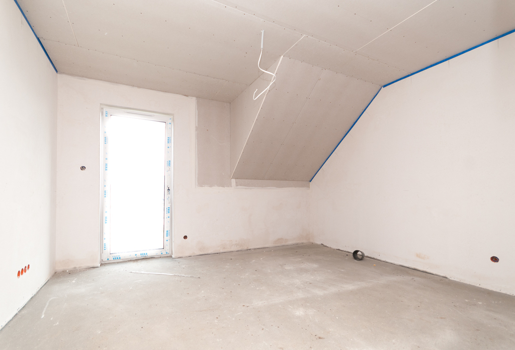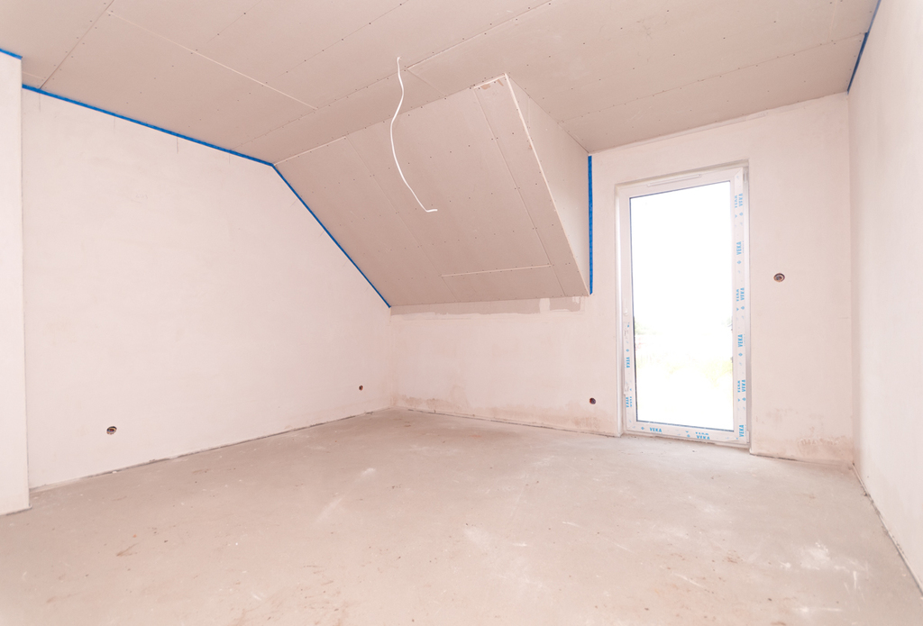 Ocieplony styropianem fasadowym grafitowym o grubości 20cm. Dach kryty dachówką ceramiczną. Ściany wewnętrzne wykończone tynkiem gipsowym.