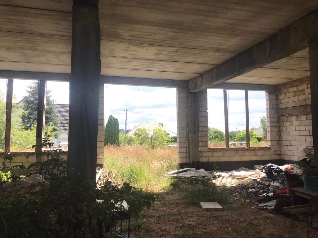 Mierzyn na sprzedaż dom z wysoką halą i częścią usługową w stanie surowym otwartym przy cichej uliczce.