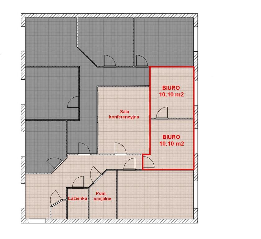 Przedstawiamy Państwu ofertę 2 pomieszczeń biurowych na wynajem zlokalizowanych na I piętrze budynku administracyjnego. Przedmiotem oferty są łącznie dwa pomieszczenia leżące obok siebie o łącznej powierzchni 20,20 m2, z dostępem do pomieszczenia socjalnego z zapleczem kuchennym oraz łazienki, w razie potrzeby istnieje możliwość skorzystania z sali konferencyjnej. Własny parking