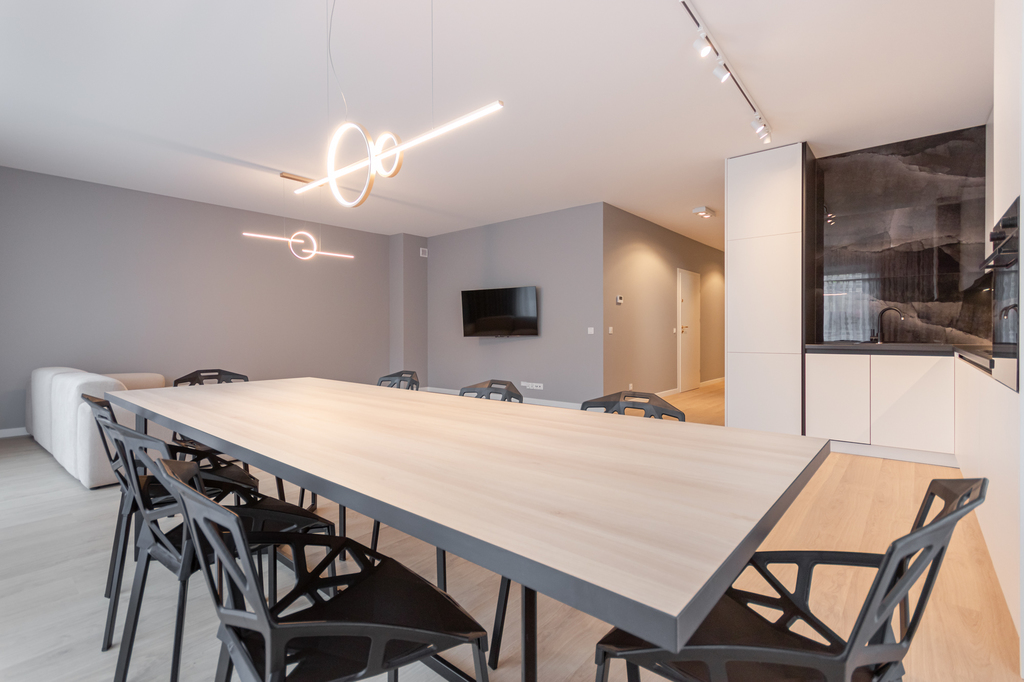 Przestrzeń wspólna w postaci salonu o powierzchni 46m2 daje możliwość spędzania wspólnego czasu.
