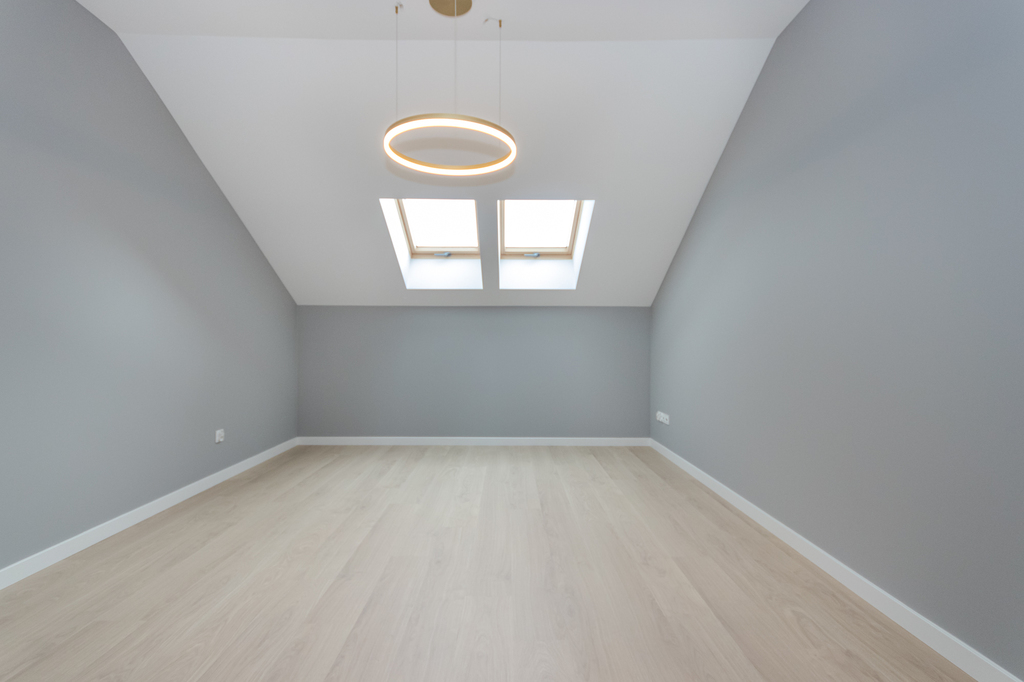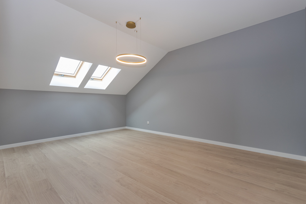 Więźba dachowa została wykonana metodą tradycyjną, dzięki czemu istnieje możliwość adaptacji dodatkowego pomieszczenia nad stropem poddasza. Przestrzeń idealnie będzie nadawała się na salę zabaw lub gabinet.
