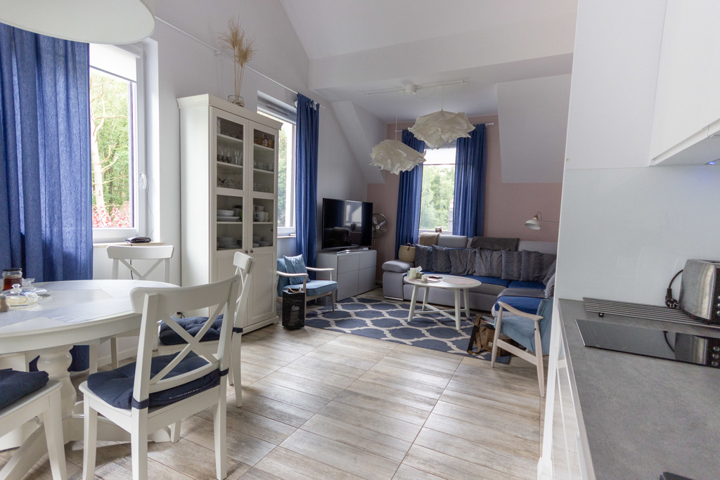???? Apartament składa się z przestronnego pokoju z aneksem kuchennym, co tworzy idealne miejsce do relaksu i gotowania.