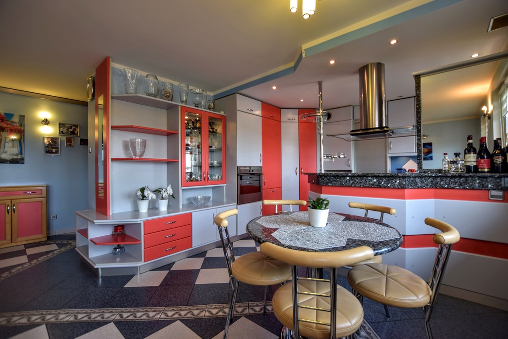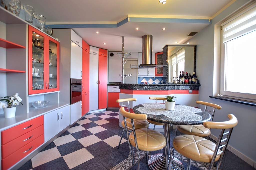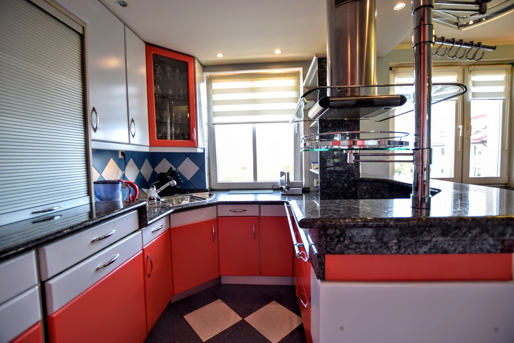 -duży, jasny, ustawny salon z dużym aneksem kuhannym,