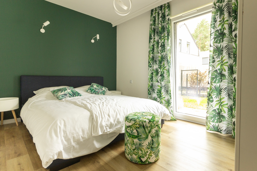???? Przytulnej sypialni zapewniającej komfortowy sen po dniu spędzonym na plaży.