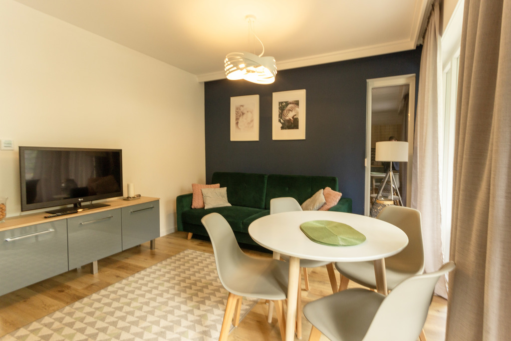 ???? Apartament składa się z przestronnego pokoju z aneksem kuchennym, co tworzy idealne miejsce do relaksu i gotowania.