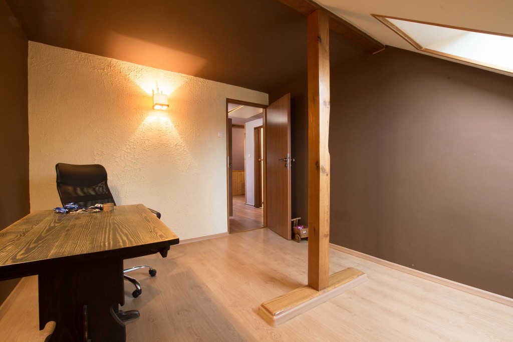Poddasze: klatka schodowa 4,4m2, hall 16,8, pokoje 12,8 i 10,8m2, łazienka 3m2 - idealne miejsce dla nastoletniego dziecka.