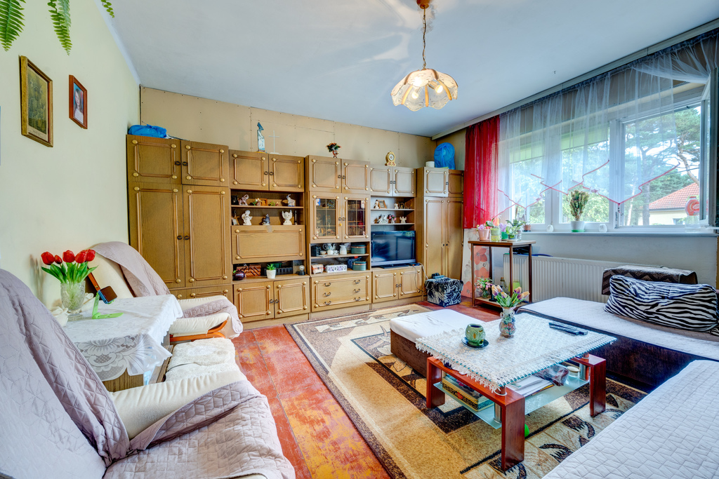 Lokal znajduje się na 1 piętrze w 2 piętrowym poniemieckim budynku. Mieszkanie jest rozkładowe, a powierzchnia wynosi 81,12 m² i składa się z 3 pokoi, które wymagają remontu co pozwala na urządzenie ich według swoich potrzeb. Każdy z pokoi ma dostęp do komina ponieważ wcześniej stały tam piece kaflowe. Osobna duża kuchnia jest w dobrym stanie, tak samo jak łazienka oraz przedpokój, w którym znajduje się wysoka i pojemna szafa, co zwiększa funkcjonalność mieszkania. Obecna właścicielka wymieniła instalację elektryczną, drzwi oraz okna. Do mieszkania przynależne są dwie duże piwnice o metrażu 9,20 m² oraz 5,74 m² co daje więcej miejsca do przechowywania. Dodatkowo na ogródku znajduje się pomieszczenie gospodarcze o powierzchni 11,48m², które świetnie nada się pod prowadzenie własnej działalności lub stworzenia przytulnego azylu, który będzie miejscem na odpoczynek po długim dniu. Istnieje możliwość postawienia garażu bądź wiaty na samochód, natomiast przed budynkiem jest wiele miejsc postojowych.