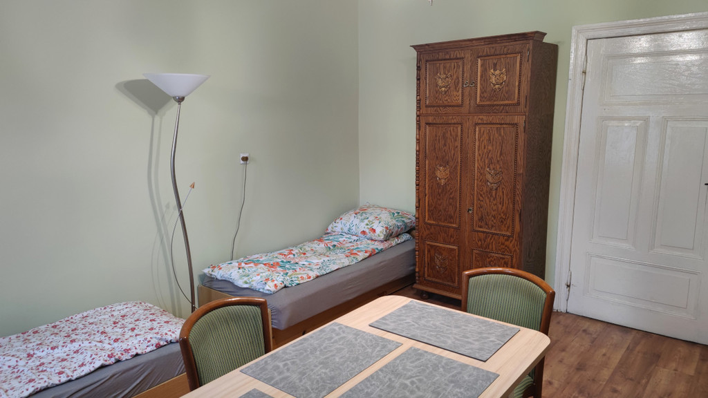 Pokoje w pełni wyposażane - łóżka (z materacami, kołdry, poduszki, pościel), szafy, stoliki, stoły, krzesła.