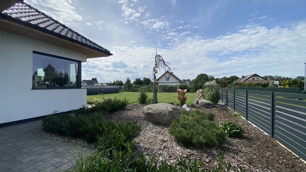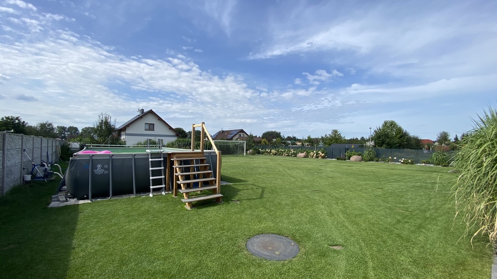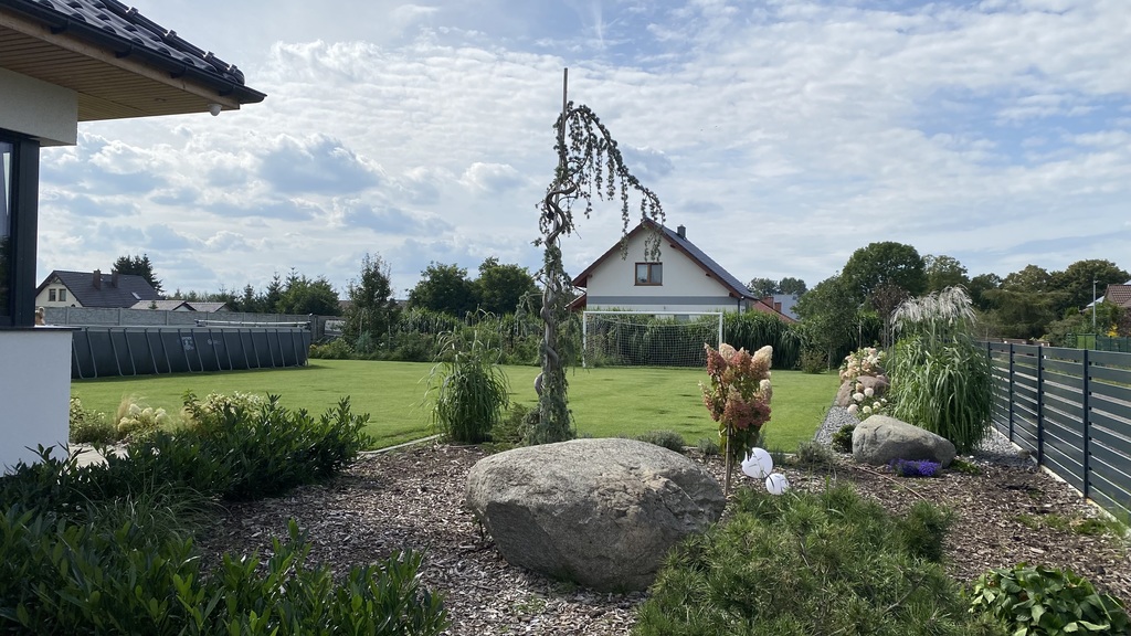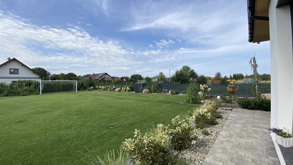 Działka o powierzchni 1500m2, w pełni zagospodarowana, zautomatyzowana (nawadnianie automatyczne, kosiarka).