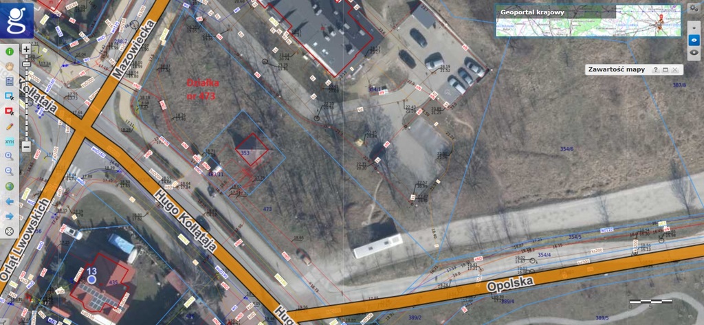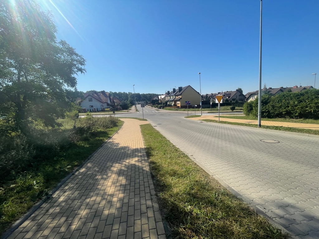 Teren inwestycyjny w Gryfinie na skrzyżowaniu ulicy Hugo Kołłątaja i ulicy Mazowieckiej. Działka w kształcie prostokąta, na środku działki zlokalizowana trafostacja.