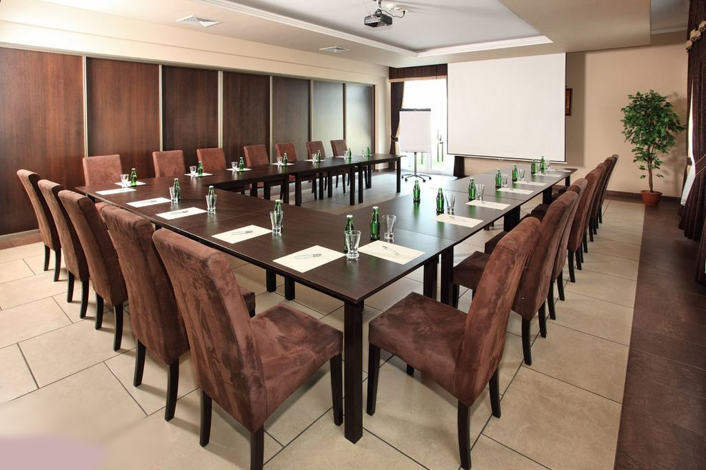 W obiekcie znajduje się restauracja, kawiarnia z barem dla 100 osób, 4 sale konferencyjno-balowe do 200 osób, recepcja z holem, zaplecze kuchenne (dwie kuchnie, dwie chłodnie, mroźnia, magazyny artykułów spożywczych, magazyn alkoholu i napoi, dwie zmywalnie naczyń), magazyn zasobów, magazyn pościeli, pomieszczenia gospodarcze, dwie kotłownie, strefa spa & wellness z jacuzzi i sauną suchą, salon hammam, salon urody, recepcja spa, sauny parowa i sucha, komnata Kleopatry z jacuzzi, szatnie dla gości spa, szatnia dla personelu, wc, przebieralnia, itp.