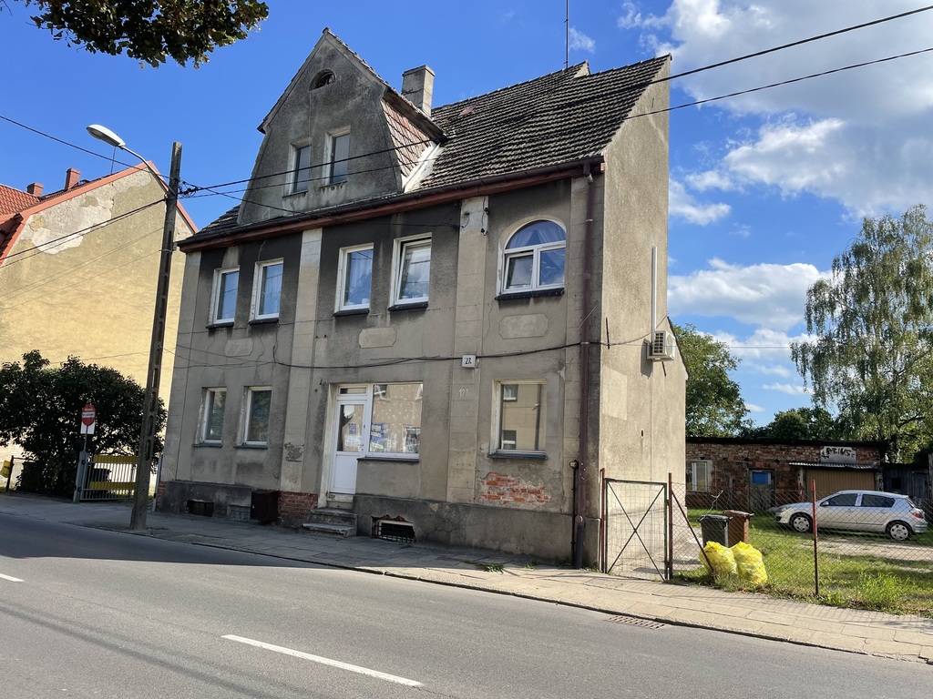 - mieszkanie na parterze 22,8 m2 (pokój, kuchnia, WC) - idealnie nadaje się na funkcje usługowe (np. sklep z witryną),