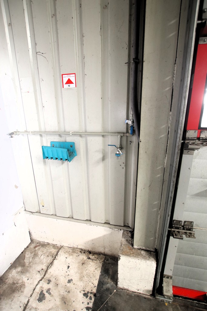 Do hali można wejść bezpośrednio przez dwie główne bramy oraz z boku od strony przestrzeni biurowej. Wjazd do hali z poziomu zero. Obok hali znajduje się duży plac pozwalający na manewrowanie tirem.