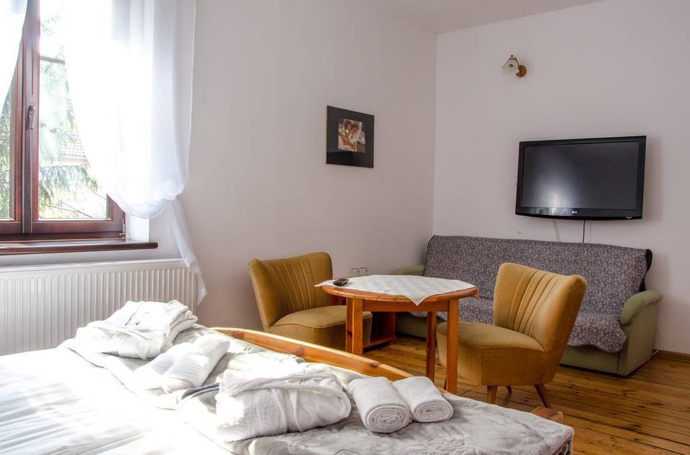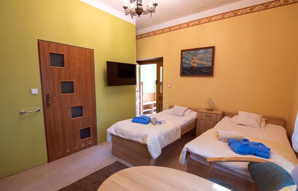 Łącznie jest 13 pokoi, wszystkie z łazienkami, TV i Wi-Fi.