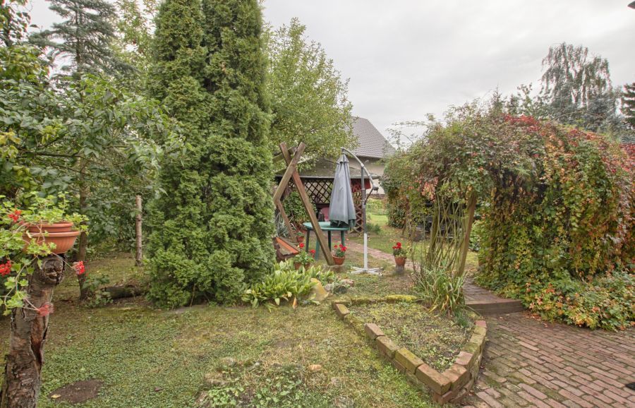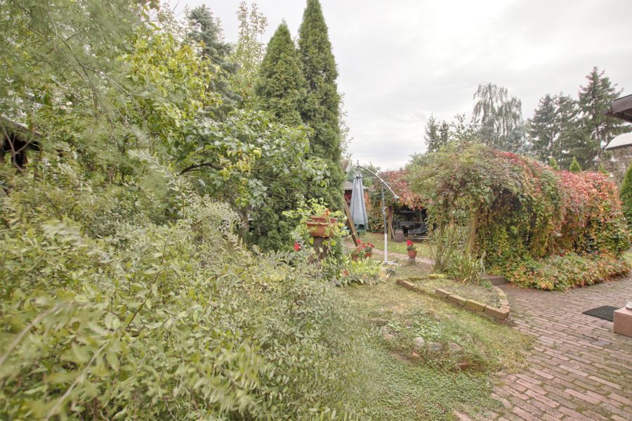 Nieruchomość położona jest na dużej działce o wielkości 848m2. Obok domu postawiony jest blaszany garaż wolnostojący.