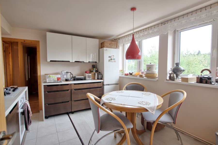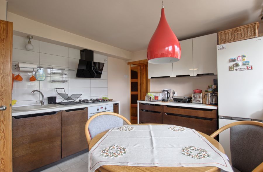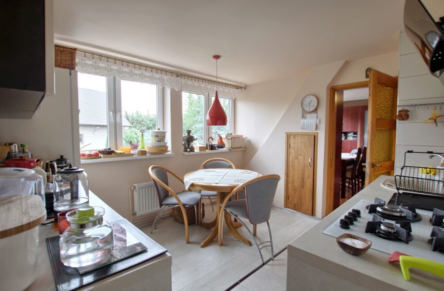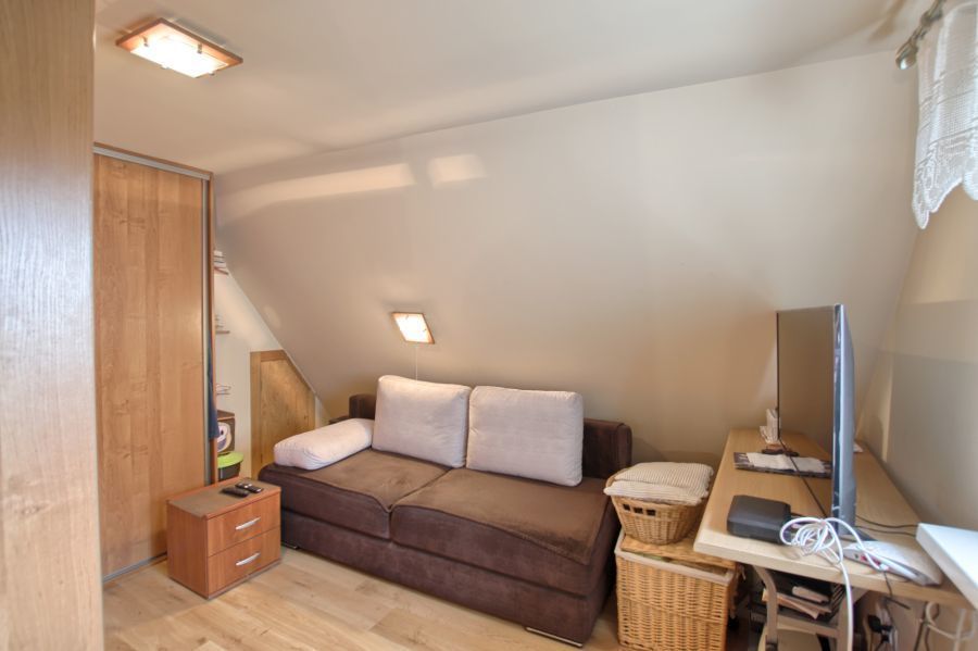 Drugi poziom stanowi mieszkanie 2 pokojowe z kuchnią, łazienką i pomieszczeniem gospodarczym. Piętro to jest w standardzie dobrym i zrobione jest ogrzewanie gazowe.