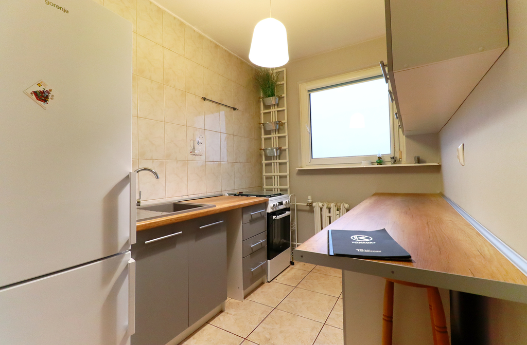 -Kuchnia wyposażona w zabudowę , lodówkę Gorenie i kuchenkę gazowo elektryczną Beco