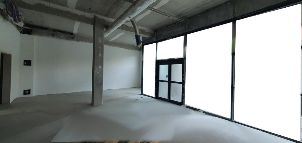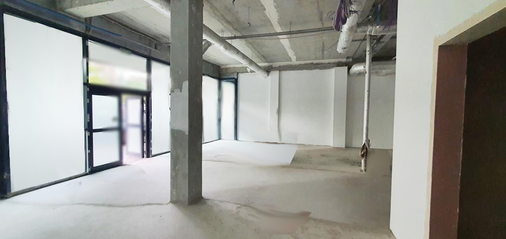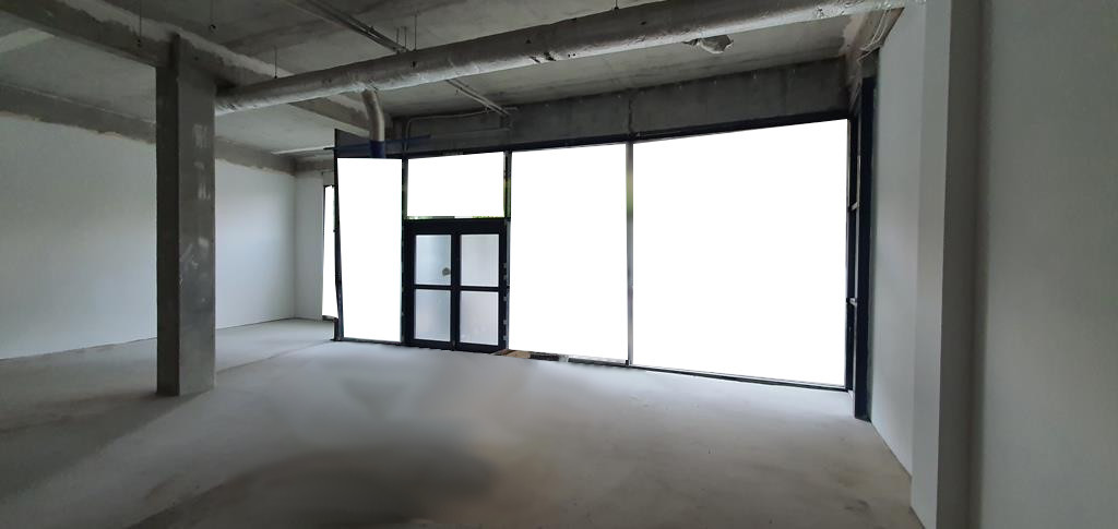 Powierzchnia całkowita 114 m2 obecnie stanowi salę typu open space oraz wydzielone pomieszczenie. Lokal posiada bardzo szerokie witryny od frontu na całej długości sali sprzedaży.