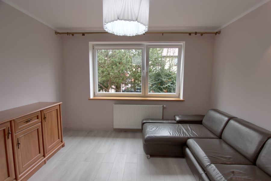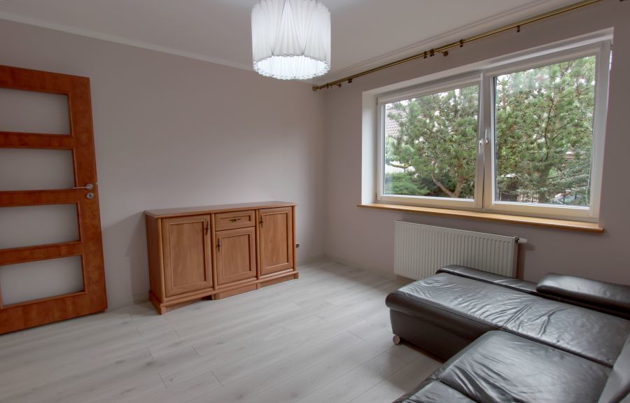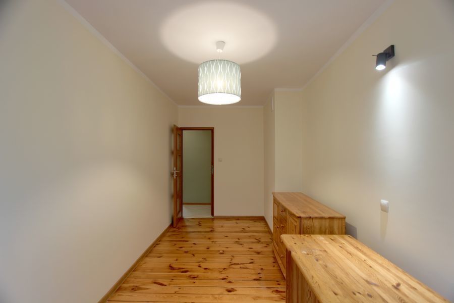 Mieszkanie zostało gruntownie odnowione. Ściany wygładzone i pomalowane, na podłodze jasne panele. Mieszkanie jest jasne i słoneczne.