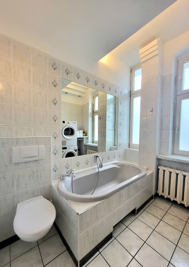 Piękne i słoneczne mieszkanie znajdujące się w samym sercu miasta w pobliżu Jasnych Błoni. Wyróżnia się sporym metrażem (164,08m²), na który przypada salon w układzie amfiladowym z przejściem do głównej sypialni, szeroki przedpokój, 3 rozkładowe pokoje z czego dwa mają wyjście na balkon- jeden od frontu budynku, drugi mniejszy od strony podwórka. Jadalnia jest połączona z kuchnią, która jest zaprojektowana we włoskim stylu, wyposażona w sprzęty AGD. W mieszkaniu znajdują się 2 łazienki jedna z wanną, druga z prysznicem. Miejsce na przechowywanie zapewni pojemna garderoba oraz przynależna piwnica. Dodatkowo funkcjonalny układ mieszkania daje możliwość stworzenia z jednego pokoju biura i prowadzenie działalności oddzielając się przy tym od części mieszkalnej. Dzięki oknom ulokowanym od strony południowej i północnej w lokalu przez cały dzień jest jasno. Apartament znajduje się na 3 piętrze w odrestaurowanej i zadbanej kamienicy z 1910 roku z zagospodarowanym podwórkiem. Budynek na przestrzeni ostatnich lat przechodził gruntowny remont i jest objęty monitoringiem.