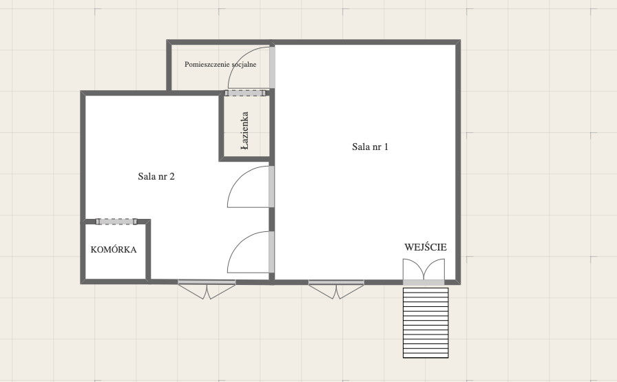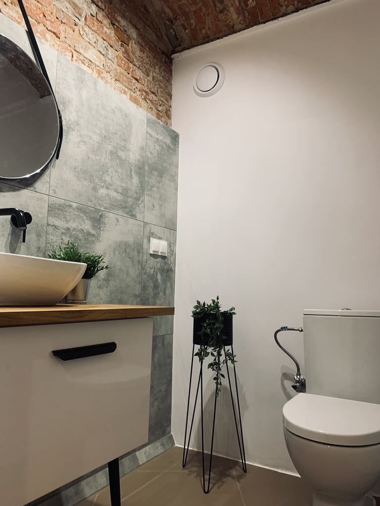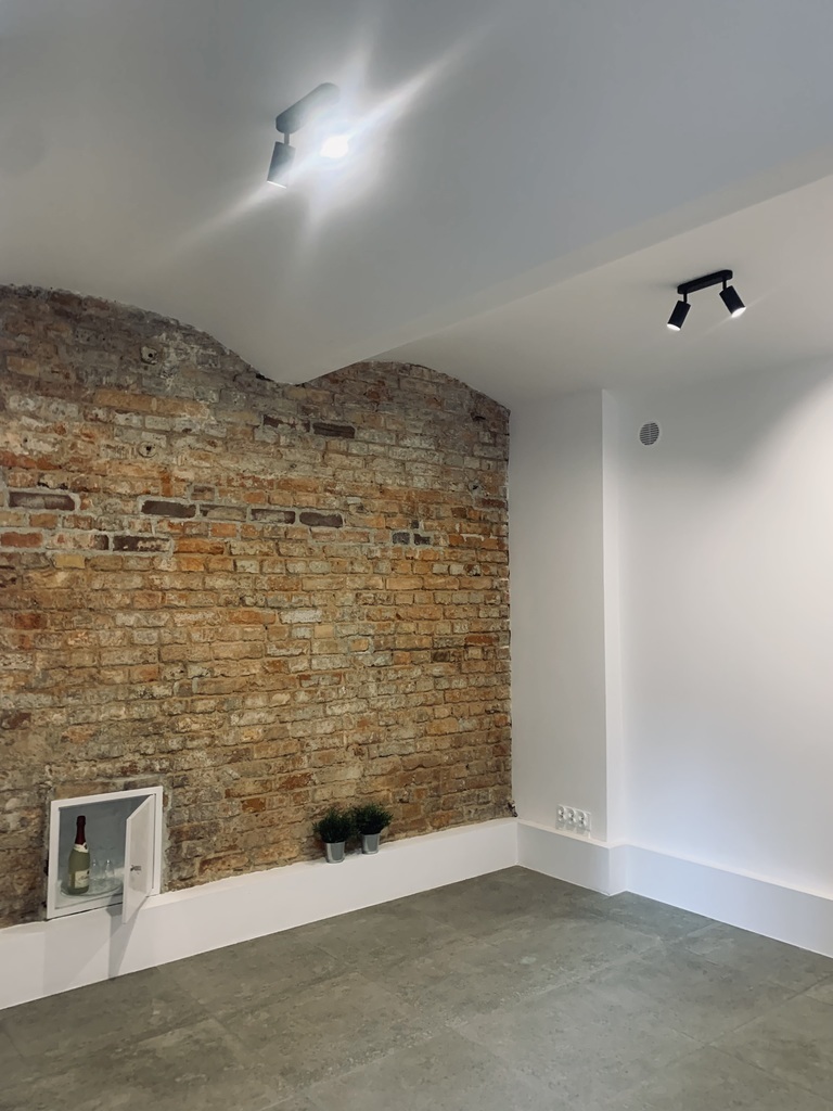 Na metraż 55 m2, składają się dwa pomieszczenia główne oraz dwa zaplecza plus łazienka z wc.