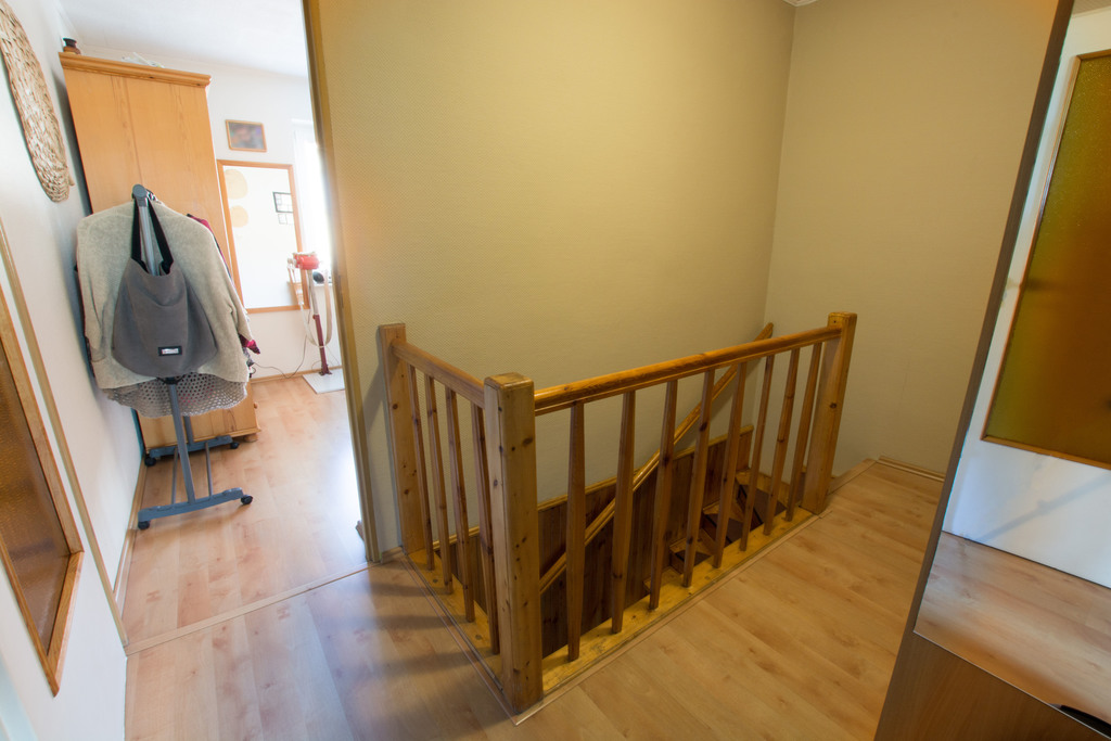 Piętro: korytarz ze schodami 6m2, dwa pokoje 9,75m2 i 16,25m2