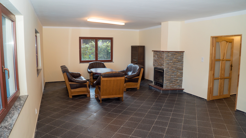- pokój z kominkiem na parterze (salon)
