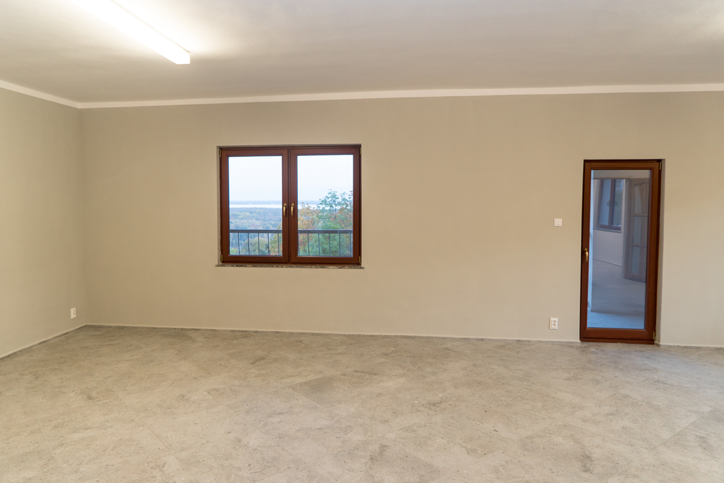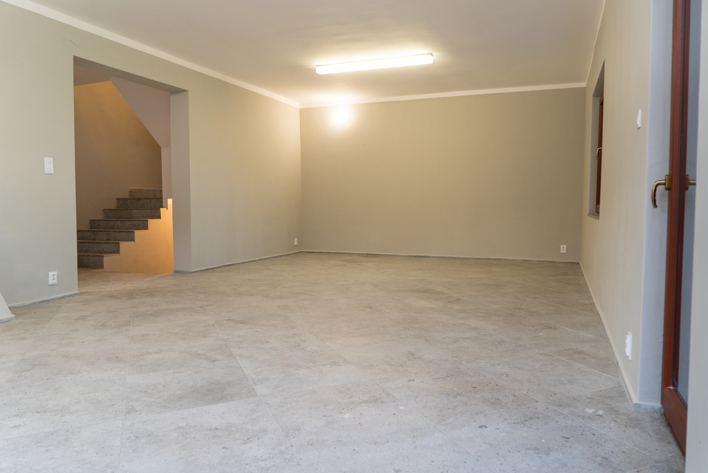 Na podłodze we wszystkich pomieszczeniach jest terakota, ściany gładzone, malowane farbą.