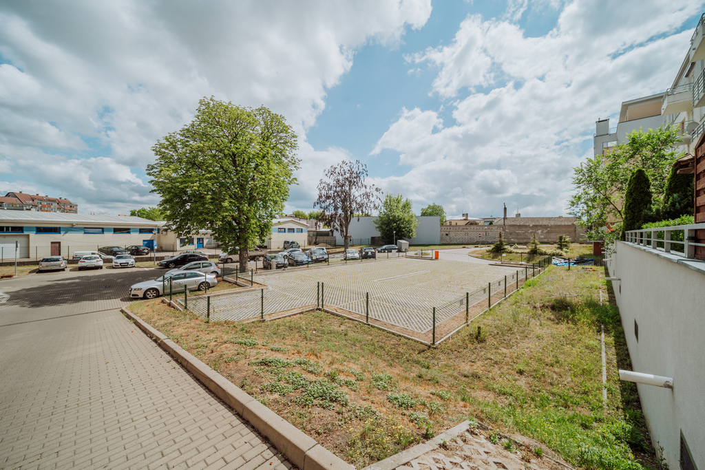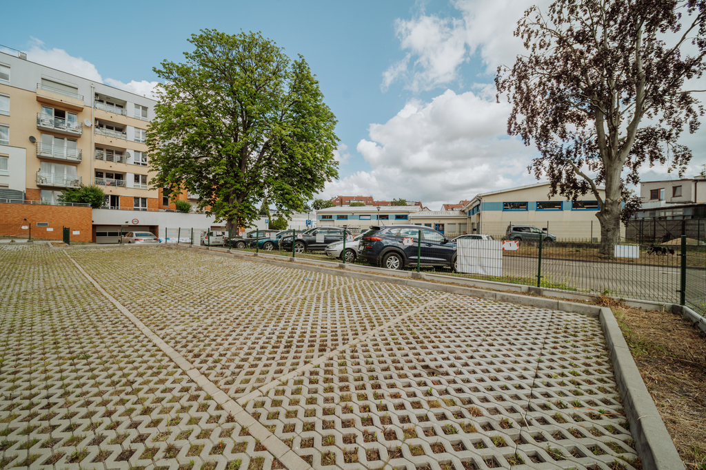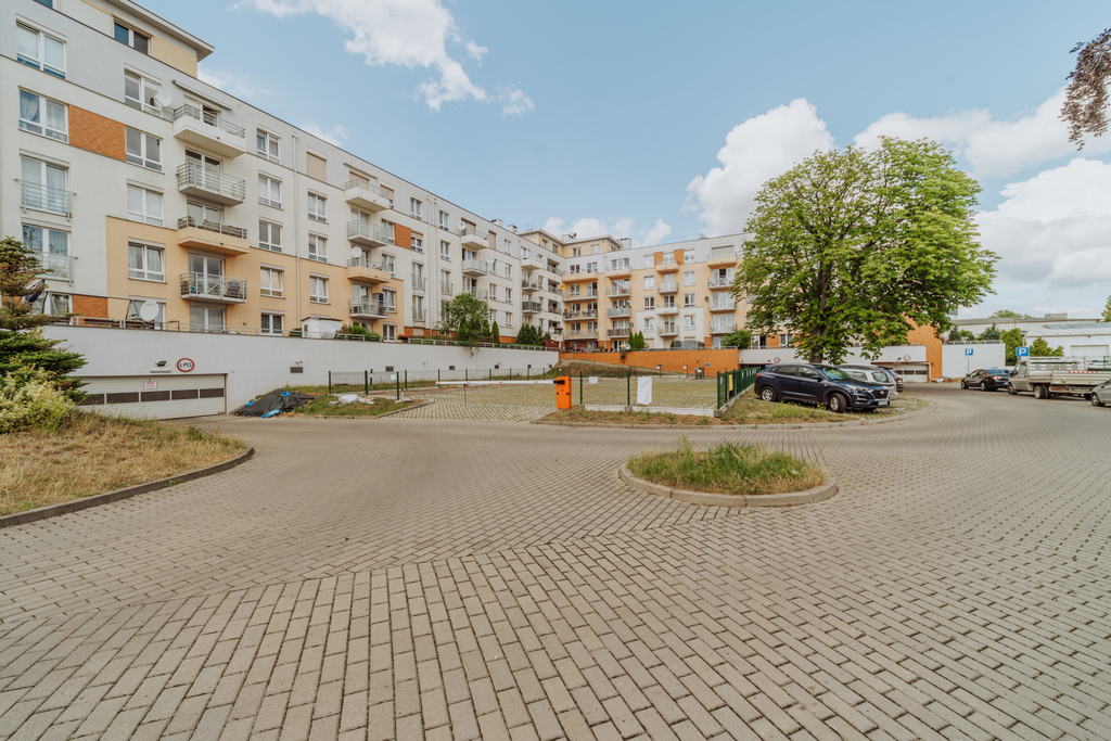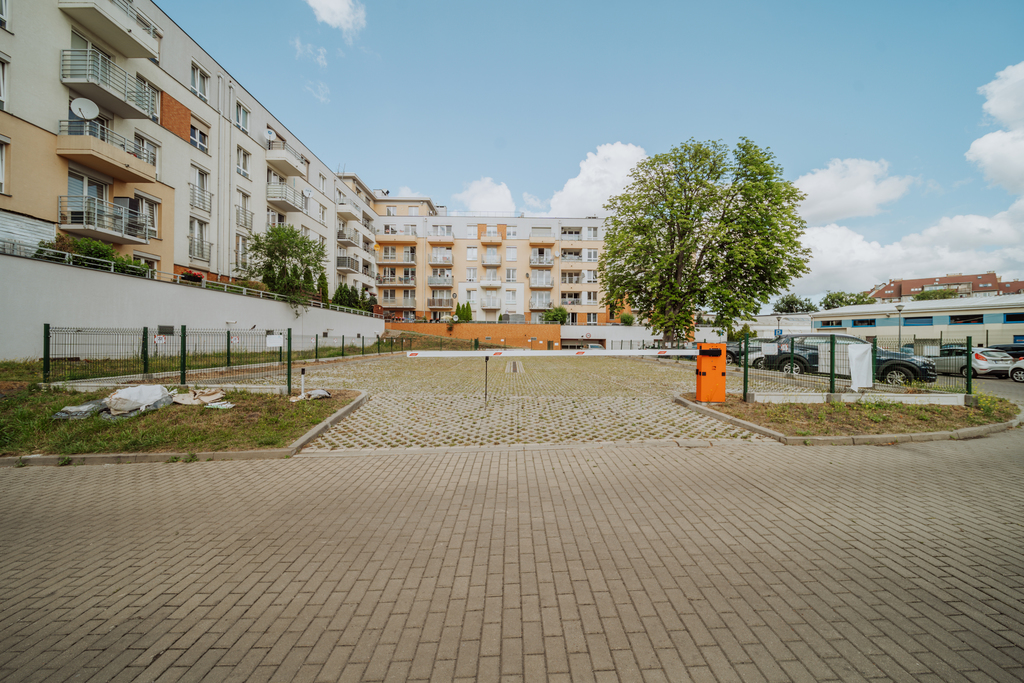 Dostępne są stanowiska parkingowe na ogrodzonym terenie z bramą elektryczną, a także poza jego obszarem.