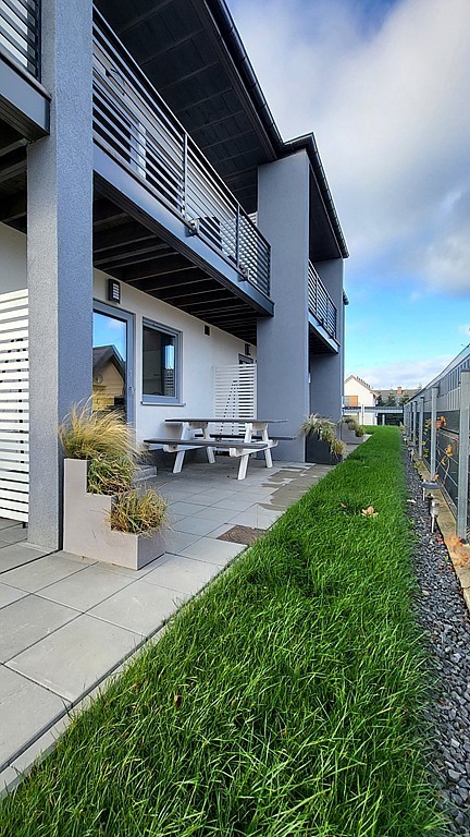 Teren wokół nienagannie zagospodarowany, przygotowany mały plac zabaw dla dzieci, wydzielony parking na 10 miejsc postojowych.