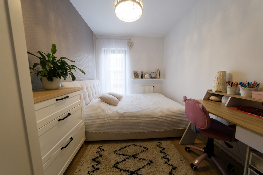 - Wygodna sypialnia o powierzchni 9,86 m², idealna do wypoczynku.