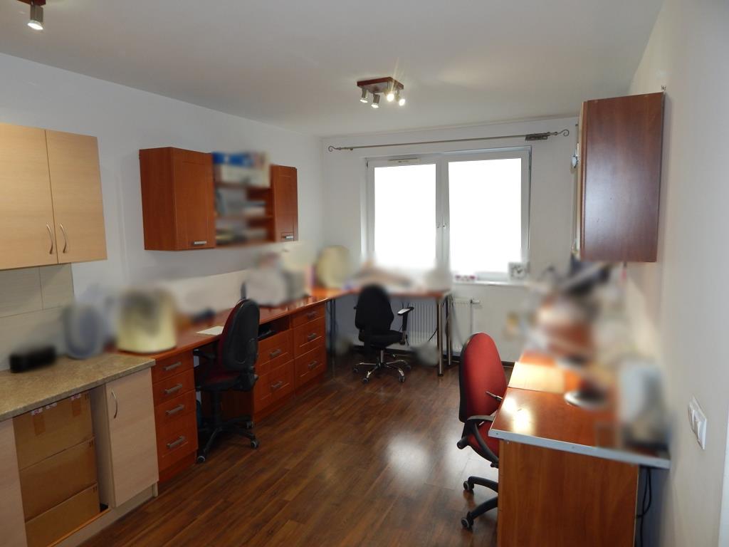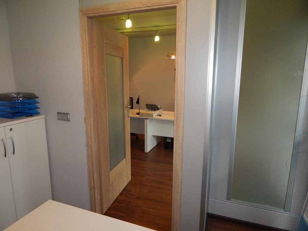 - części biurowo-usługowej z osobnym wejściem z ulicy (sala sprzedaży/obsługi klienta ok. 20 m2, gabinet (ok. 4 m2), pomieszczenie socjalne z aneksem kuchennym oraz toaleta).