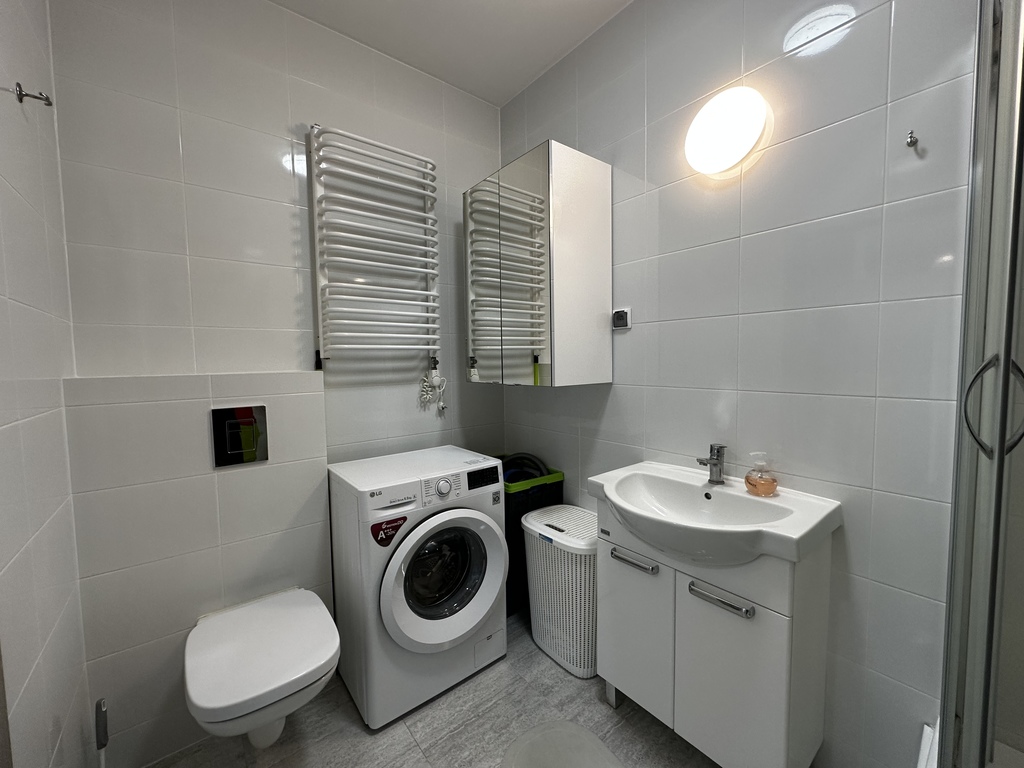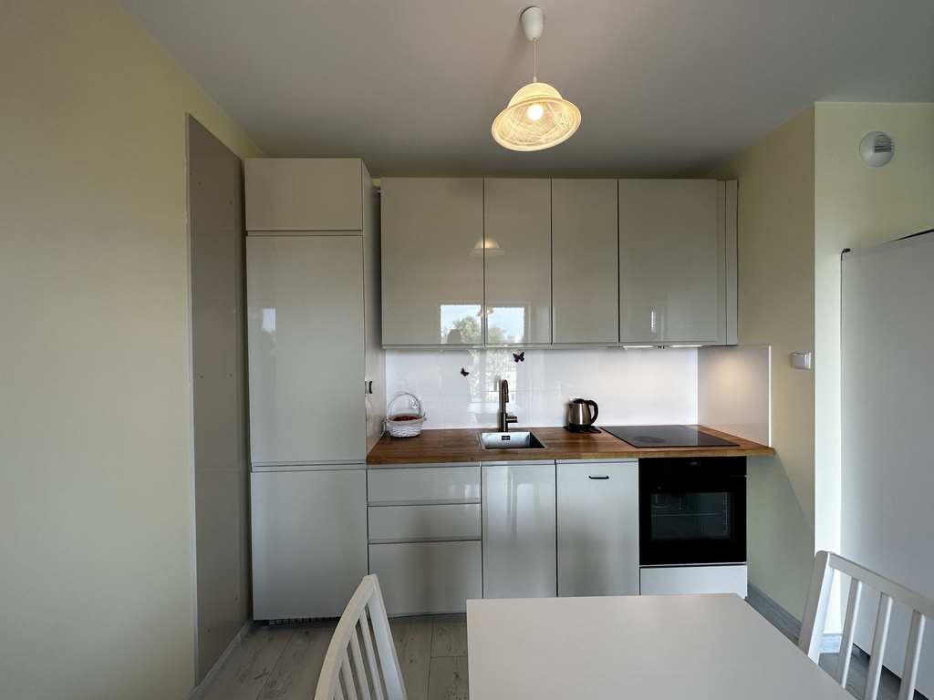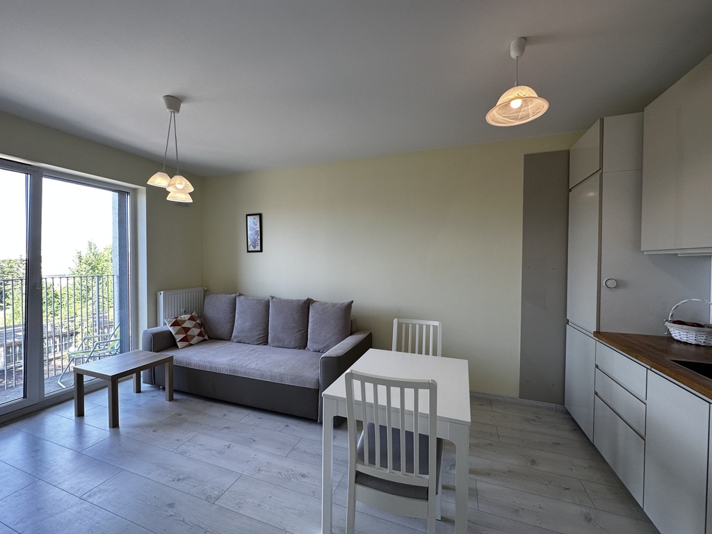 Na sprzedaż mieszkanie dwupokojowe (37,08m2) w centrum Kołobrzegu na kameralnym osiedlu "Za Świerkami" w nowym bloku z 2020 roku. Mieszkanie składa się z dwóch pokoi, sypialni 11,43m2 , salonu z aneksem kuchennym 16,20m2, łazienki z prysznicem i pralką o powierzchni 4,59m2 , przedpokoju 4,35m2 oraz balkonu o pow. 2,88m2. Budynek jest pięciokondygnacyjny, mieszkanie jest zlokalizowane na ostatnim 4 piętrze. Jest widne i ustawne. Jest w pełni wyposażone. Wszystkie meble, zabudowa kuchenna z Ikei z 2021r., okap kominowy, sprzęty AGD i RTV (zakupione w 2021r.)zostają w mieszkaniu. Mieszkanie jest gotowe do zamieszkania lub wynajęcia. Ściany budynku oraz ściany wewnętrzne pomiędzy sąsiadami wykonane są z bloczków silikatowych o grubości 24cm, dodatkowo ściany zewnętrzne są ocieplone styropianem i wełną 18cm(mieszkanie jest ciche - nie słychać sąsiadów). Okna są trzyszybowe i drzwi antywłamaniowe. Balkon jest betonowy (do wykończenia). W budynku jest domofon, każde mieszkanie ma przypisany kod do wejścia, wjazd na wyższe pietra windą. Teren jest ogrodzony, na terenie osiedla jest wydzielona strefa zieleni z ławkami oraz plac zabaw dla dzieci. Do ścisłego centrum jest 950m, do plaży zachodniej nie całe 2 km. W sąsiedztwie jest przedszkole, przychodnia Inter Medical, Szpital, Hala Millenium z basenem, stadion sportowy, liceum,  sklepy LIDL, Żabka.
