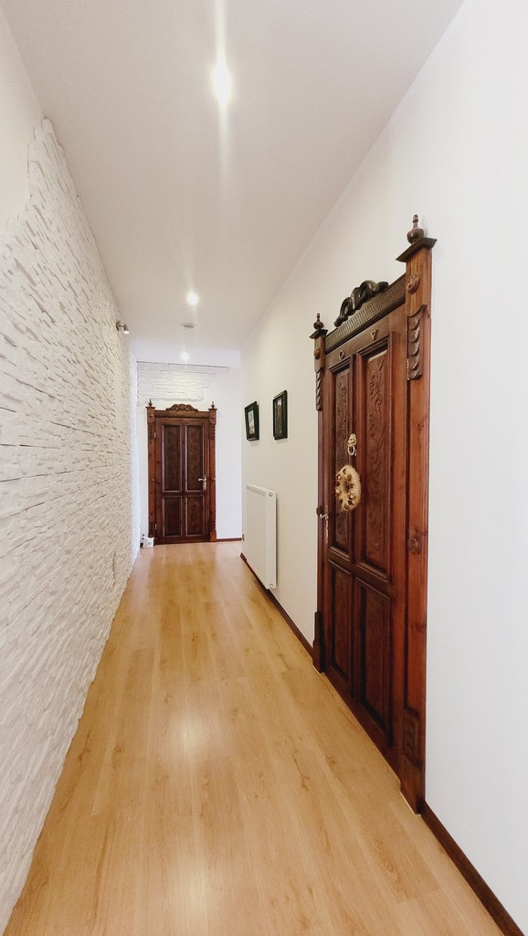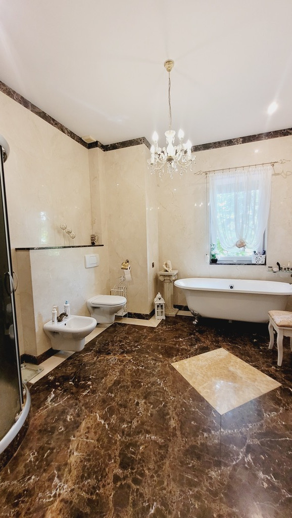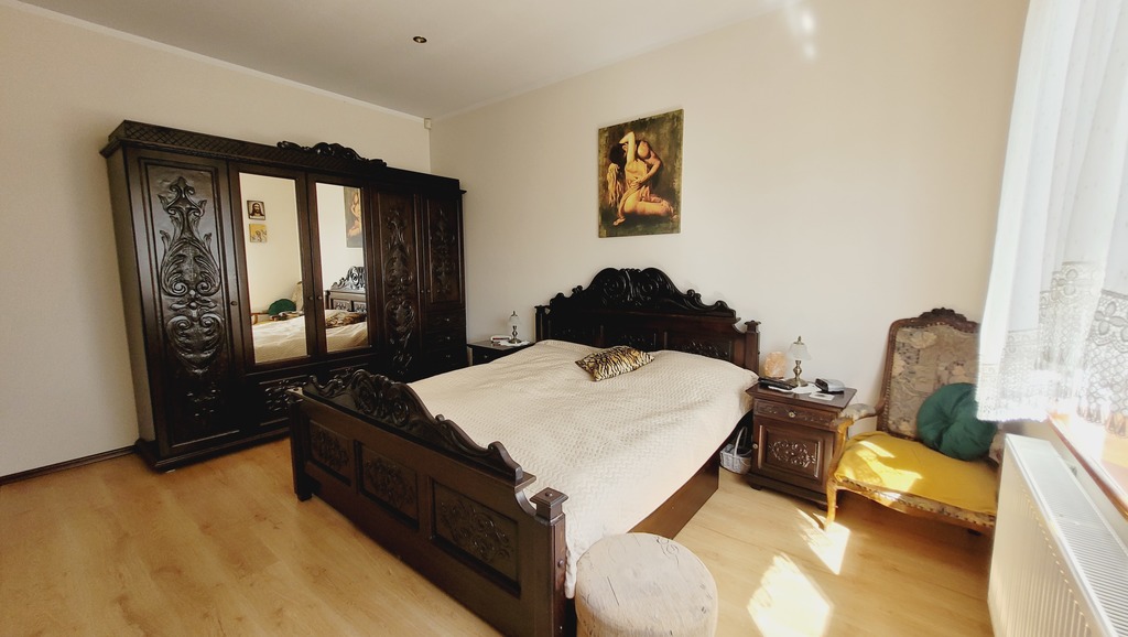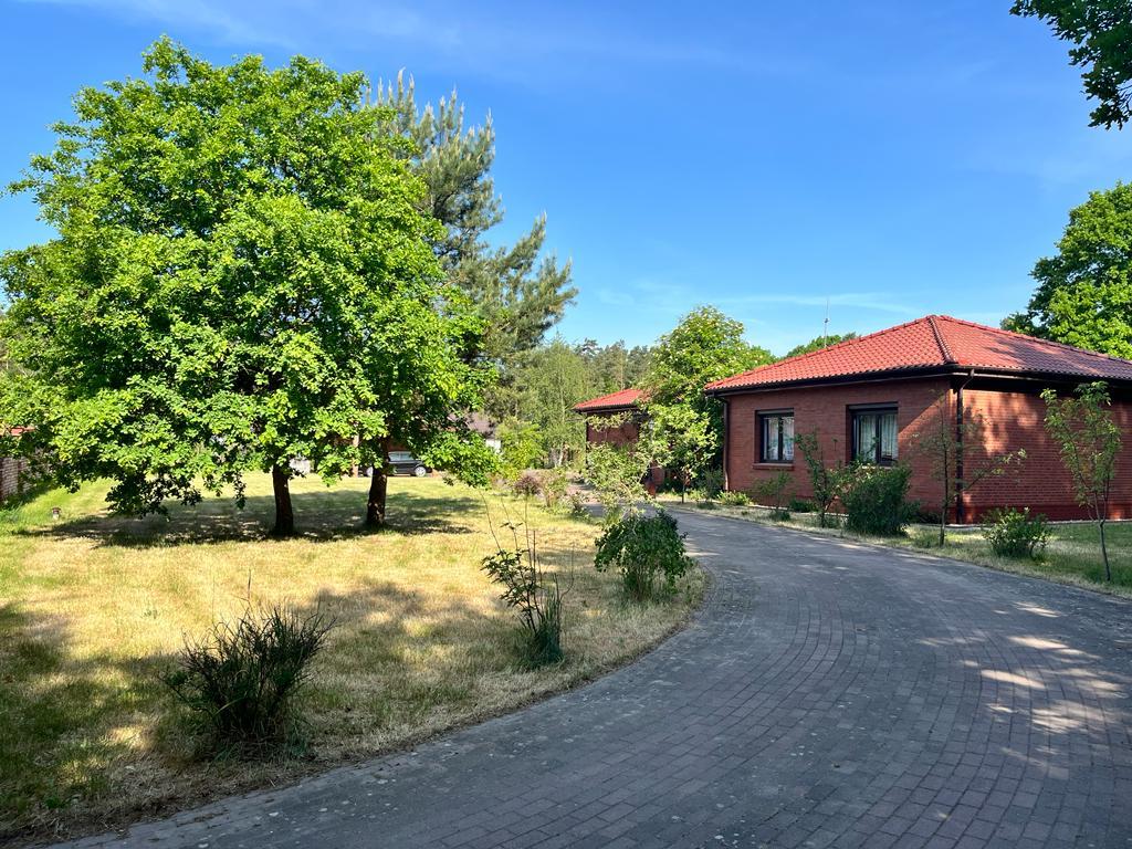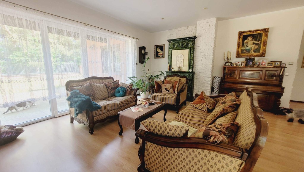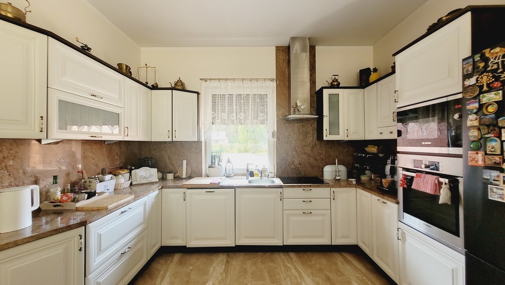 Parterowy dom zaprojektowany w nowoczesnym stylu o powierzchni użytkowej 161,90 m2 . Powierzchnia całkowita domu to 219,3 m2.Nieruchomość położona jest na bardzo dużej działce siedliskowej w kształcie kwadratu o powierzchni 4123 oraz z przylegającego do niej lasu o powierzchni 3310m2 na którym prócz drzew pospolitych rośnie kilka Dębów , które maja ponad 100lat. . Całość ogrodzona płotem z cegły. Tworząc jedną niepowtarzalną działkę o powierzchni 7433m2. Dom jest w pełni wyposażony i umeblowany( w cenie pozostają meble kuchenne oraz meble biurko i witryna w jednym z pokoi) co sprawia, że jest gotowy do zamieszkania. Projekt domu został przemyślany tak, aby każdy czuł się w nim swobodnie i komfortowo .Wykończony wyłącznie z wysokiej jakości materiałów. Meble kuchenne drewniane w zabudowie z blatami granitowymi. Dom składa się z dużego salonu z jadalnią (39,7m2) z wyjściem na duży taras, 3 sypialni ( 14,8m , 18,6m2 13,1m2) przestronny hol, łazienka w wc , wc oraz kotłowni z pralnią. Duży garaż dwustanowiskowy o powierzchni 27m2. Dach domu pokryty dachówką ceramiczną. Dach ocieplony wełną mineralną o grubości 0,5m .Okna w domu wszystkie PCV dobrej jakości. We wszystkich oknach rolety antywłamaniowe. Dom wykończony cegłą klinkierową , która stanowi dodatkowe ocieplenie. Dom ocieplony bardzo dobrze ( 3 warstwy izolacyjne ) Dom może być ogrzewany zmiennie - gruntowa pompa ciepła renomowanej firmy "Nibe" oraz nowoczesny piec kaflowy z kominkiem , który idealnie wpasowuje się w salonie. Własna studnia głębinowa Na zewnątrz - urokliwy, zadbany, ogród z dużą liczbą nasadzeń otoczony płotem z cegły.