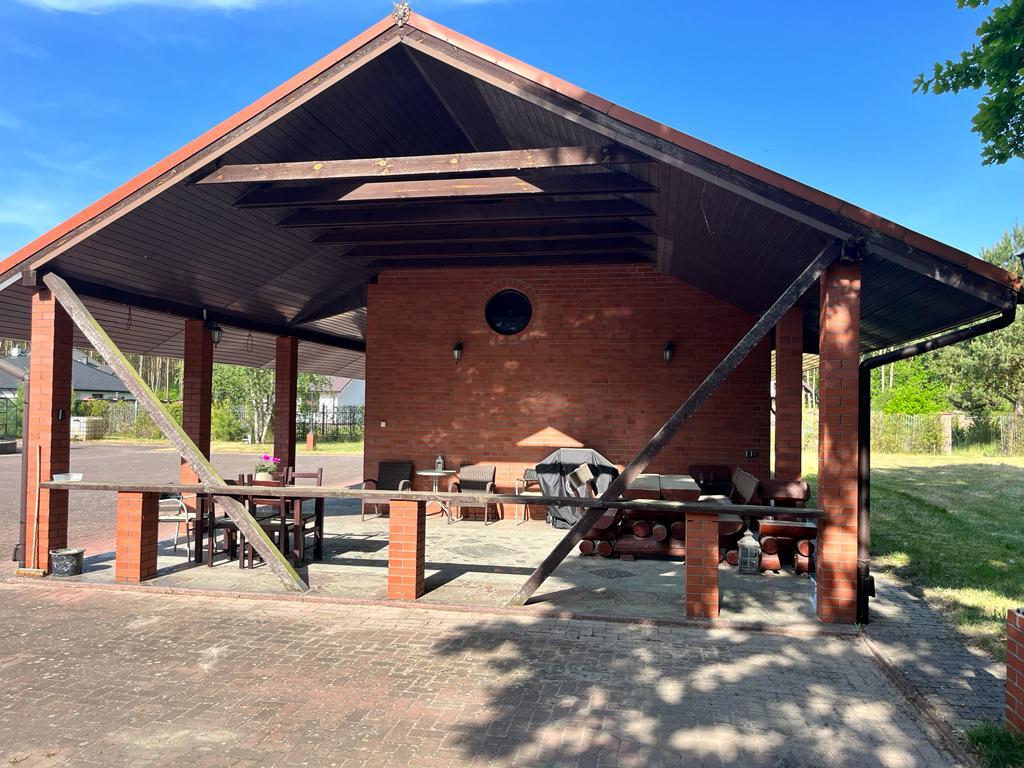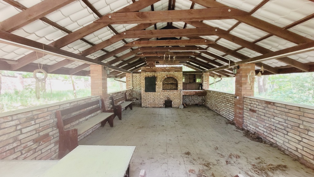 - oraz zadaszona wiata murowana z w części rekreacyjnej, posadowiona w bocznej części idealnie nadająca się na rodzinne imprezy okolicznościowe bądź spotkania. W środku wybudowany grill oraz wędzarnia)