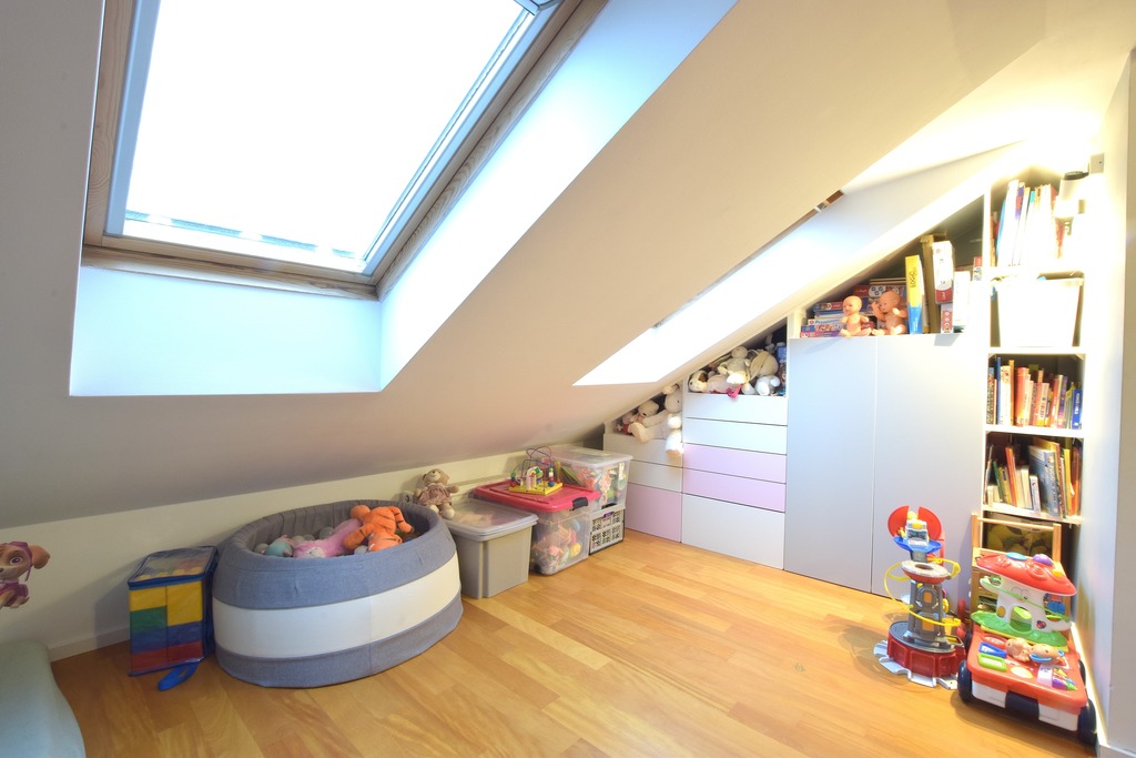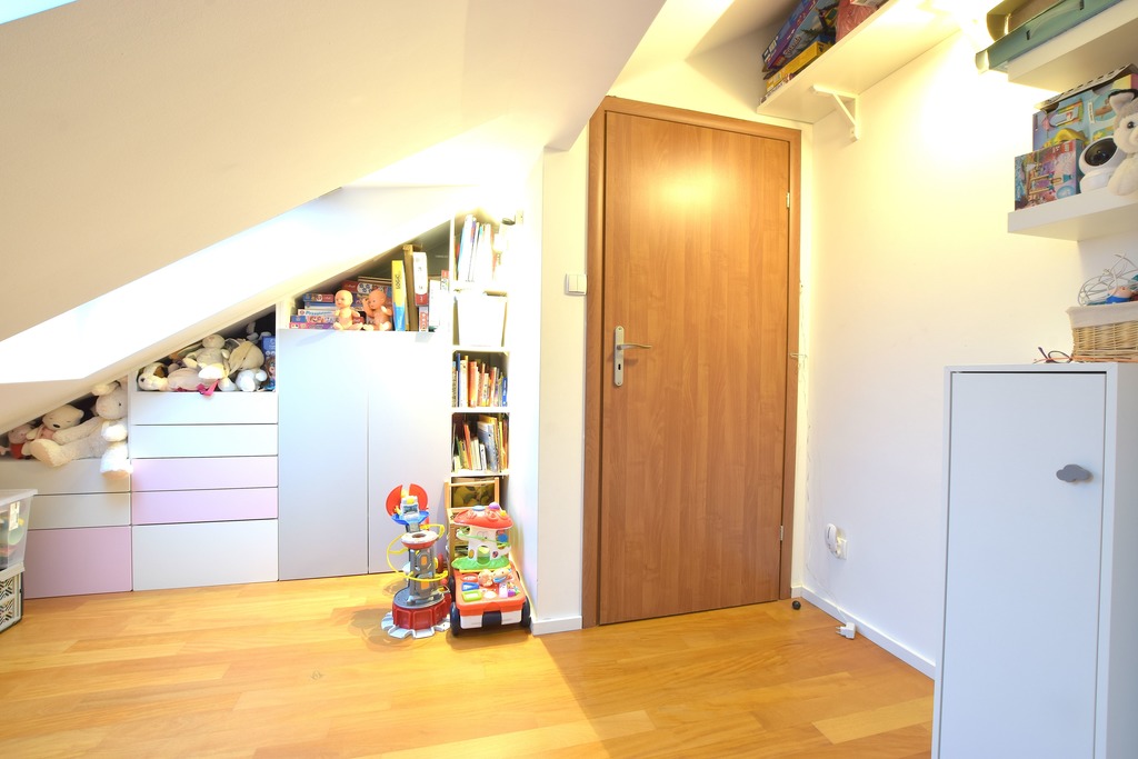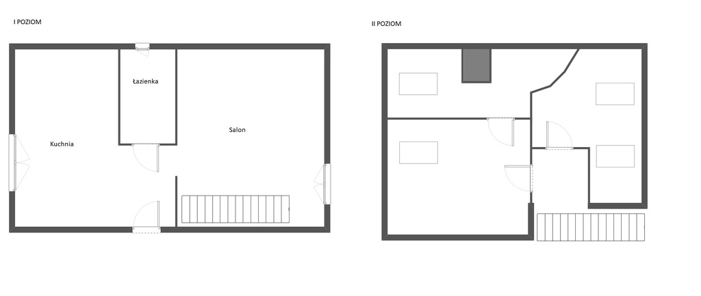 II poziom: dwa pokoje oraz łazienka z wanną narożną.