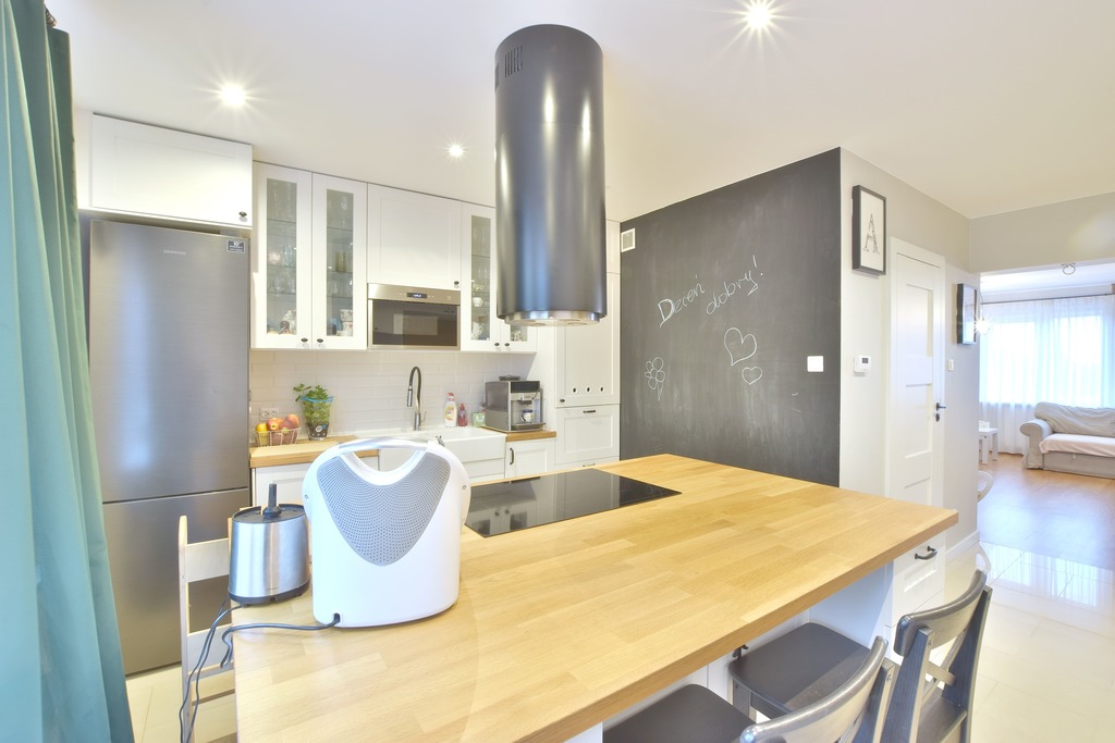 I poziom to część dzienna, przestronny salon z kominkiem o powierzchni około 30m2, duża kuchnia otwarta na przedpokój, zabudowa kuchni na wymiar wraz z dużą wyspą (całość zostaje w cenie), łazienka z kabiną prysznicową (z oknem).