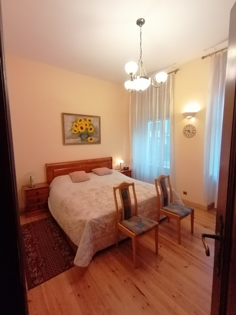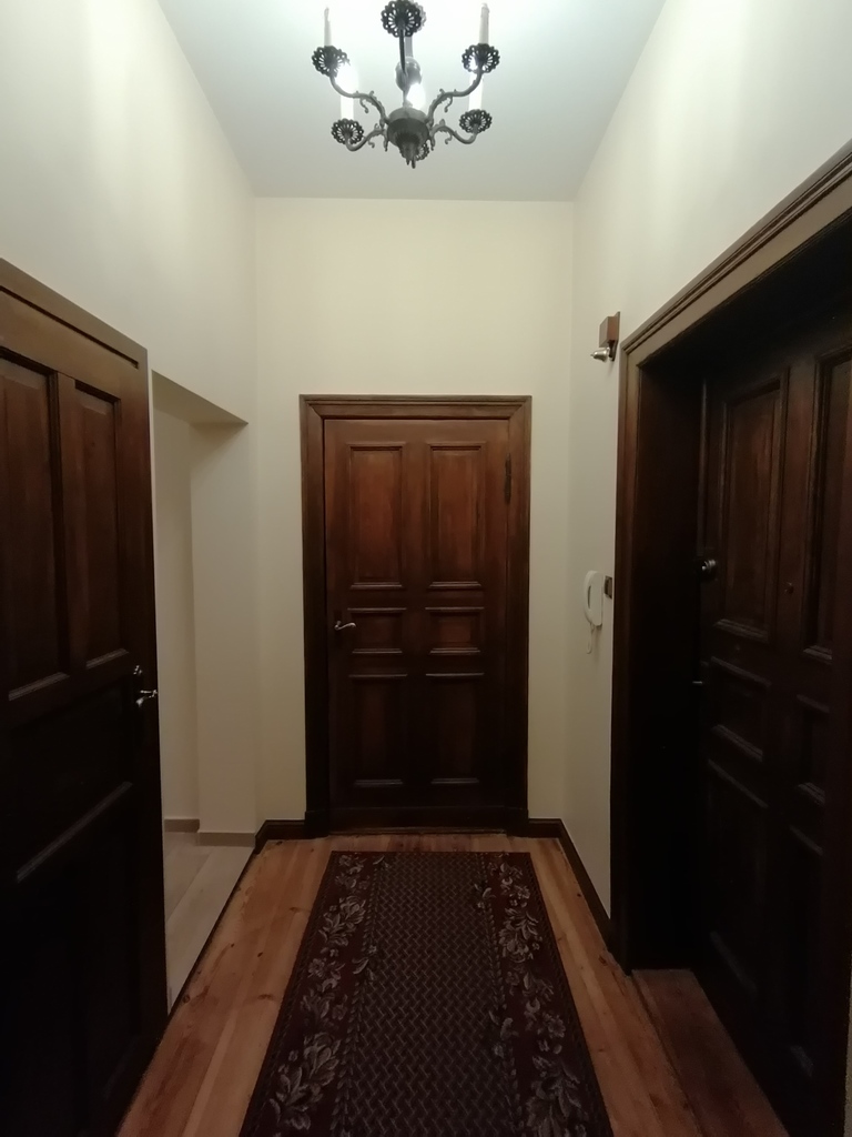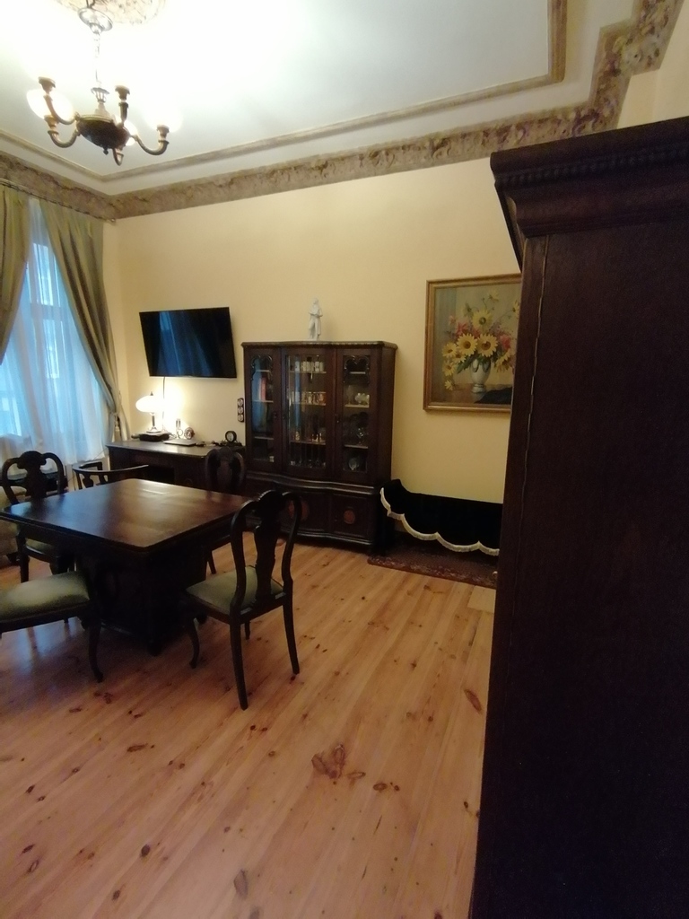 Szczególną uwagę zwraca salon, z przepięknie wyeksponowaną sztukaterią sufitową. Idealnym dopełnieniem jest oryginalna drewniana podłoga, drewniane okna oraz meble uwypuklające secesyjny charakter wnętrza (możliwość pozostawienia mebli w rozliczeniu).