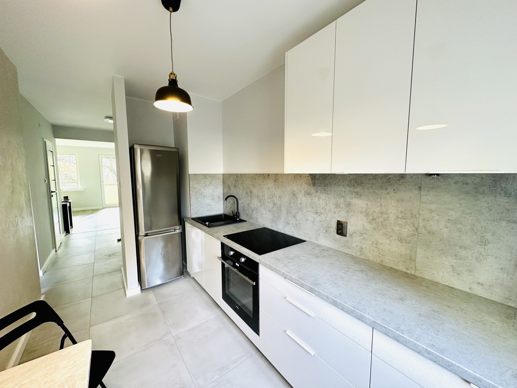 Mieszkanie jest umeblowane i wyposażone w nowy sprzęt / pralka, lodówka, piekarnik, płyta grzewcza, zmywarka, telewizor.