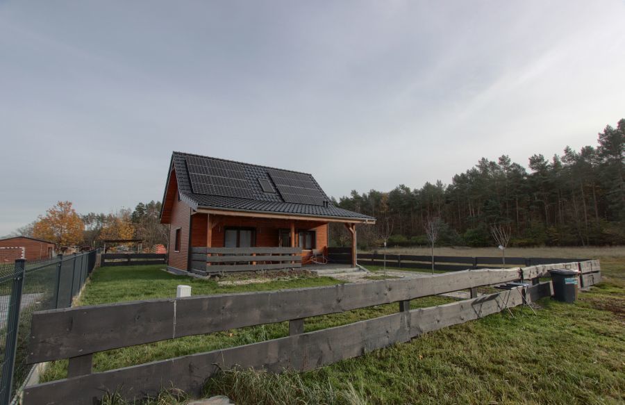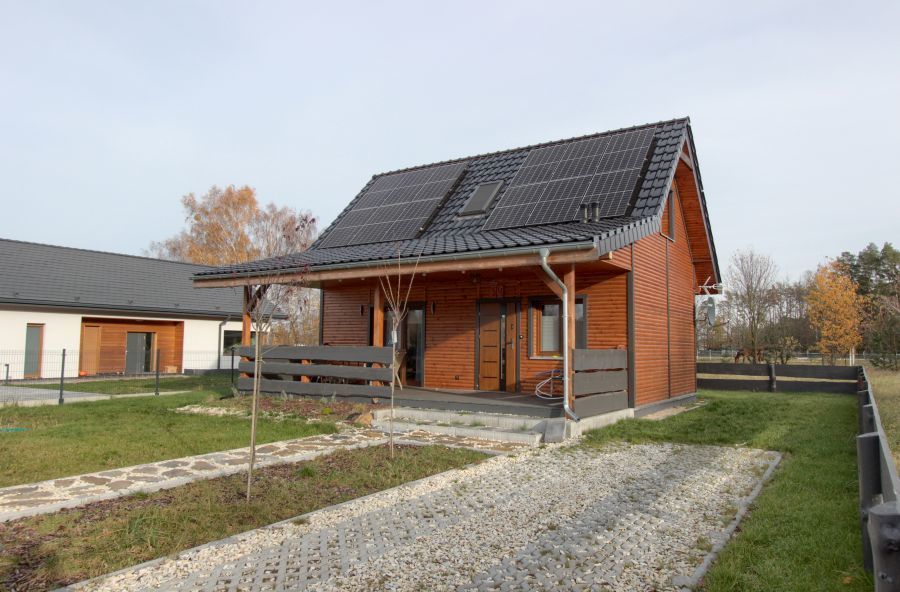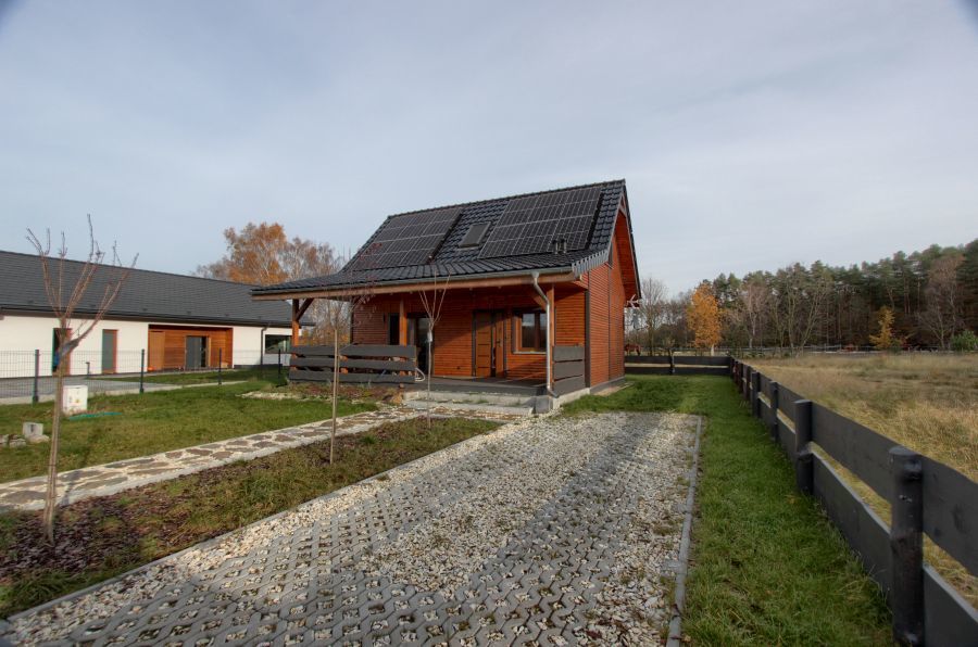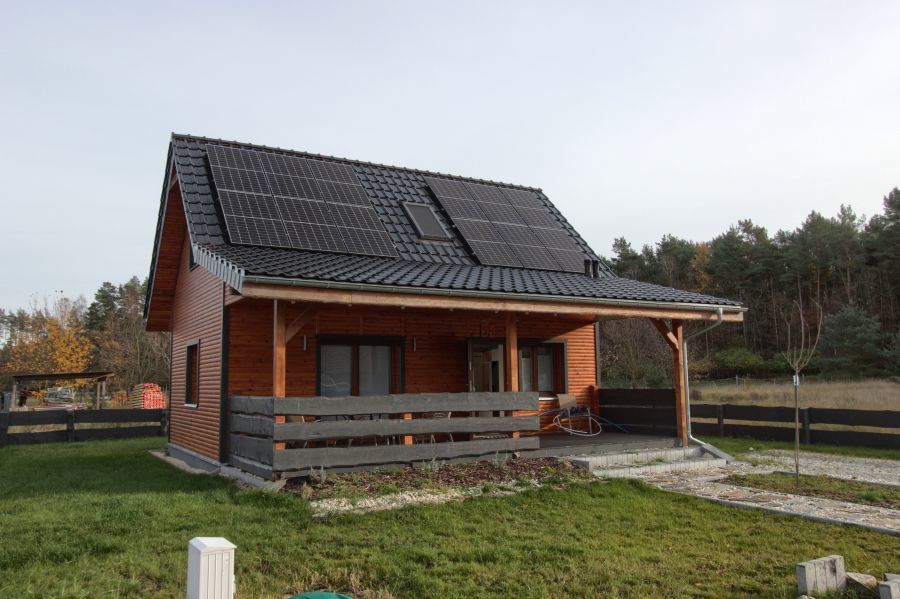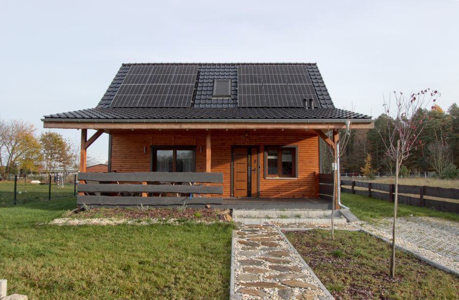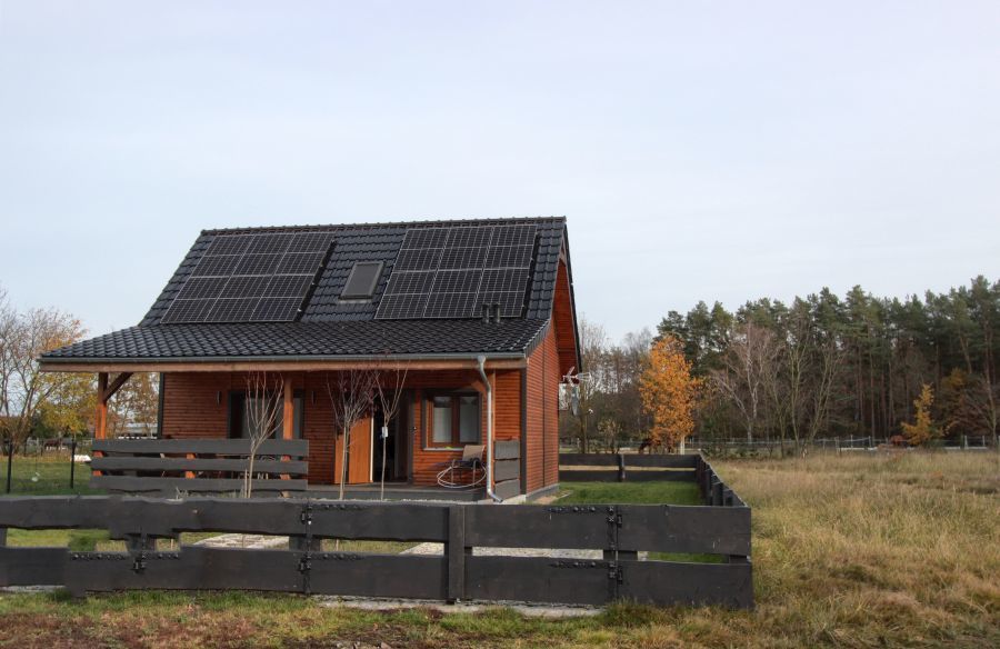 Na dachu panele fotowoltaiczne, klimatyzacja we wszystkich pomieszczeniach.