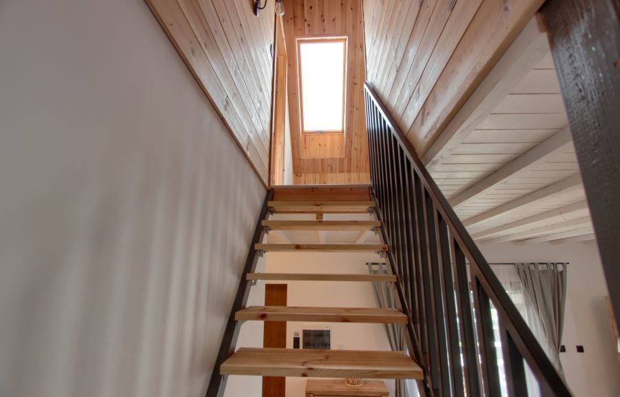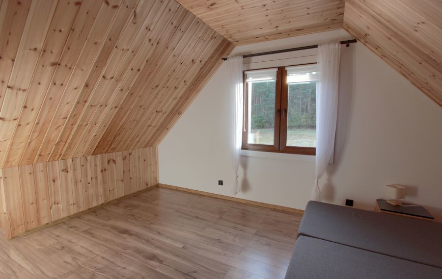 Dom konstrukcji murowanej z doskonałą izolacją - 18 cm beton komórkowy, 2x 5 cm wełny mineralnej, deski drewniane.